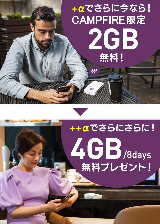 CAMPFIREにてご購入の方限定で、今なら計6GB分を無料プレゼント中なので、購入してからすぐにお使いいただけます!