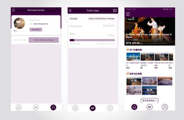 秘境を巡るツアー中でも、重要な会議の最中でも、ネットへのアクセスが切れる心配はありません。アプリを起動して、パッケージを選択。すぐにデータチャージすることができます。