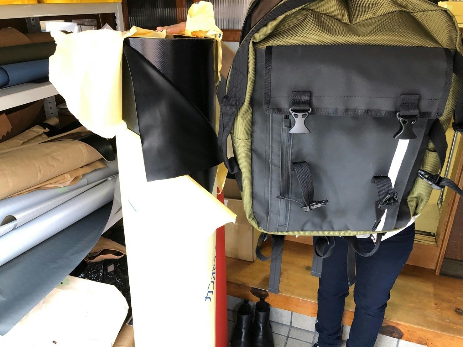今回フロントポケットに使用しているターポリン生地ですが、同じターポリンでも最新のものにアップデートしようと思います。