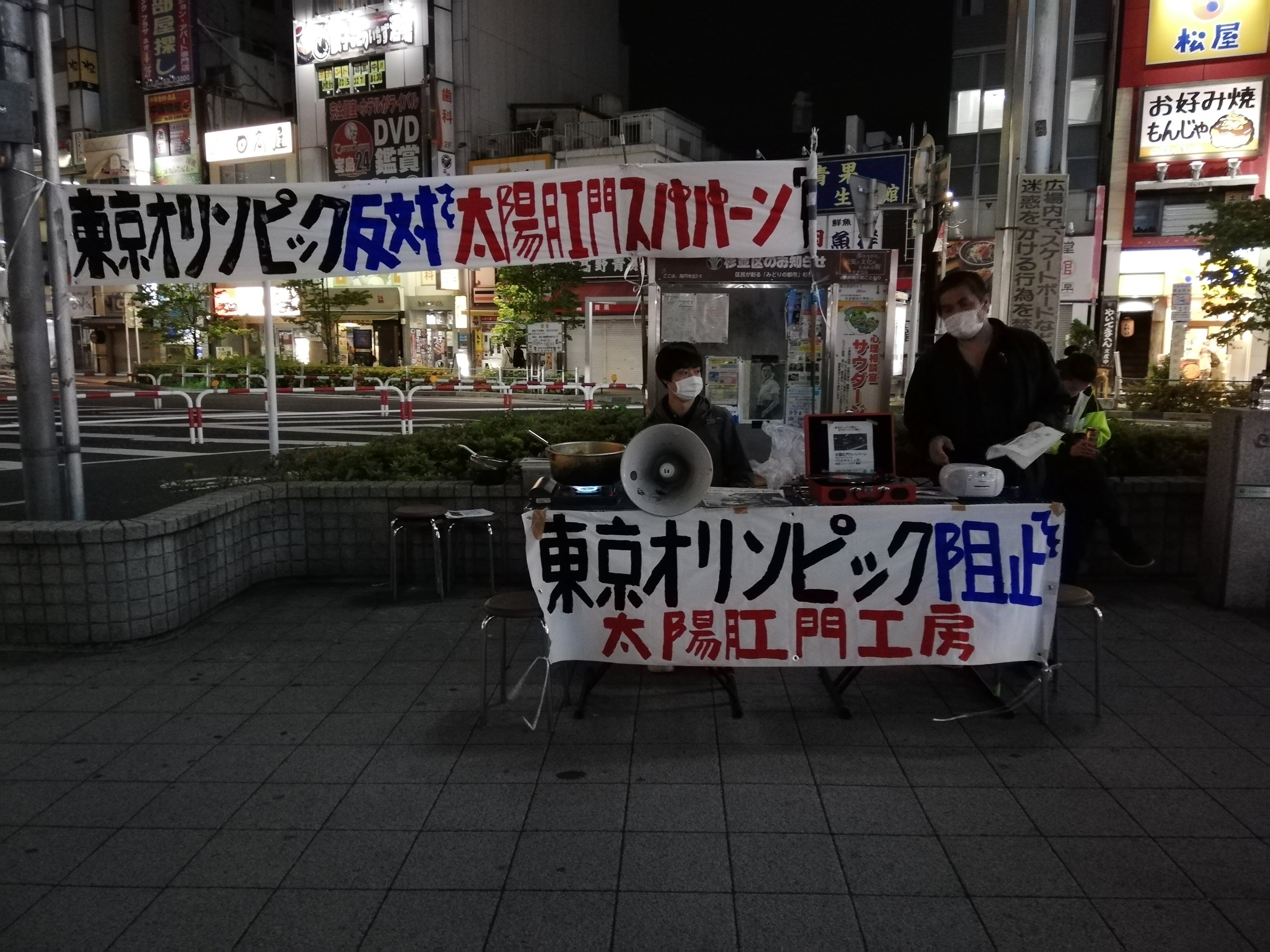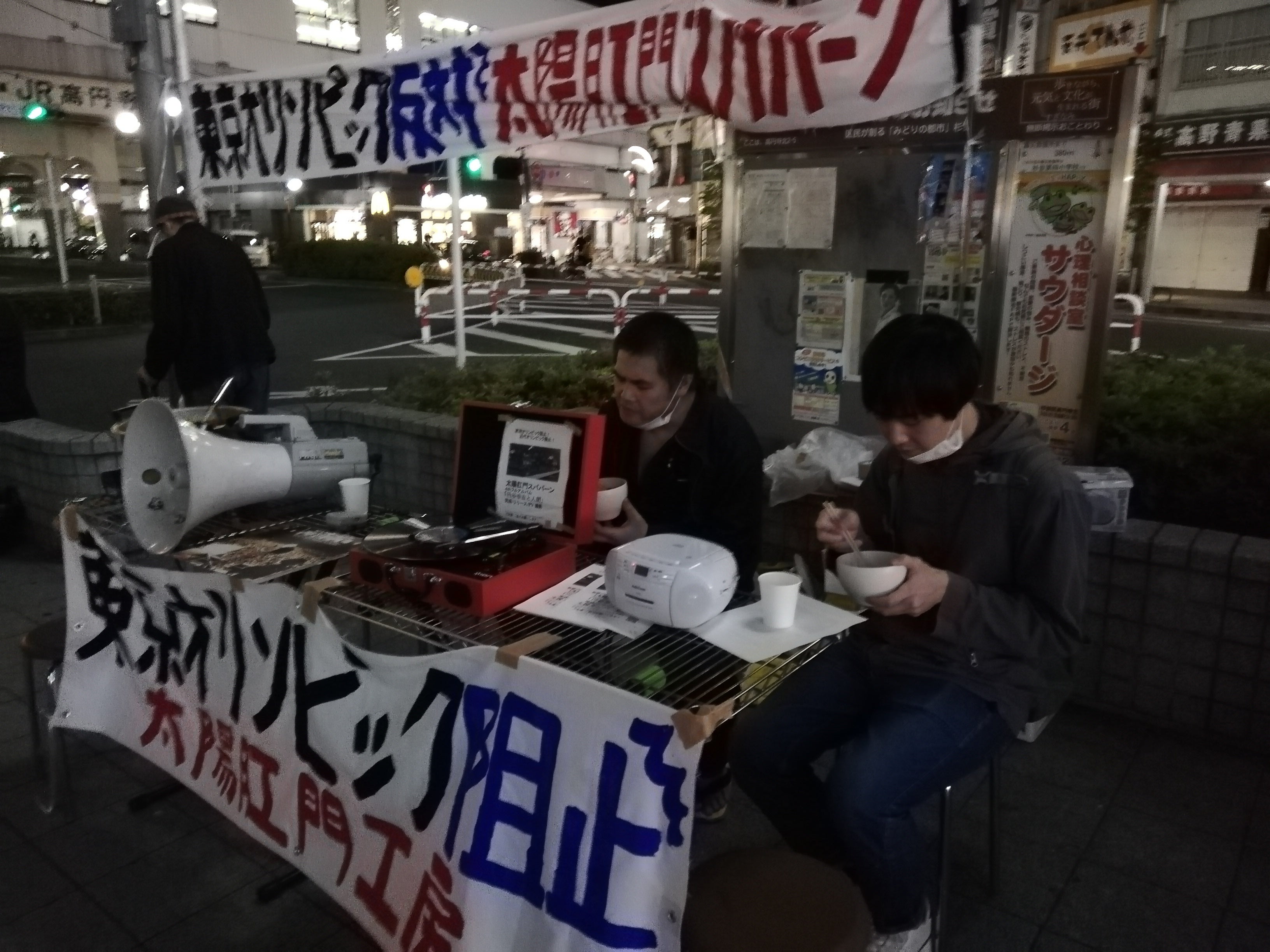 昨夜、高円寺駅北口広場にて東京オリンピック阻止!近代オリンピック廃絶!街頭情宣と長野の地でオリンピックに反対する仲間から送ってもらった鹿のひれ肉鍋行いました。