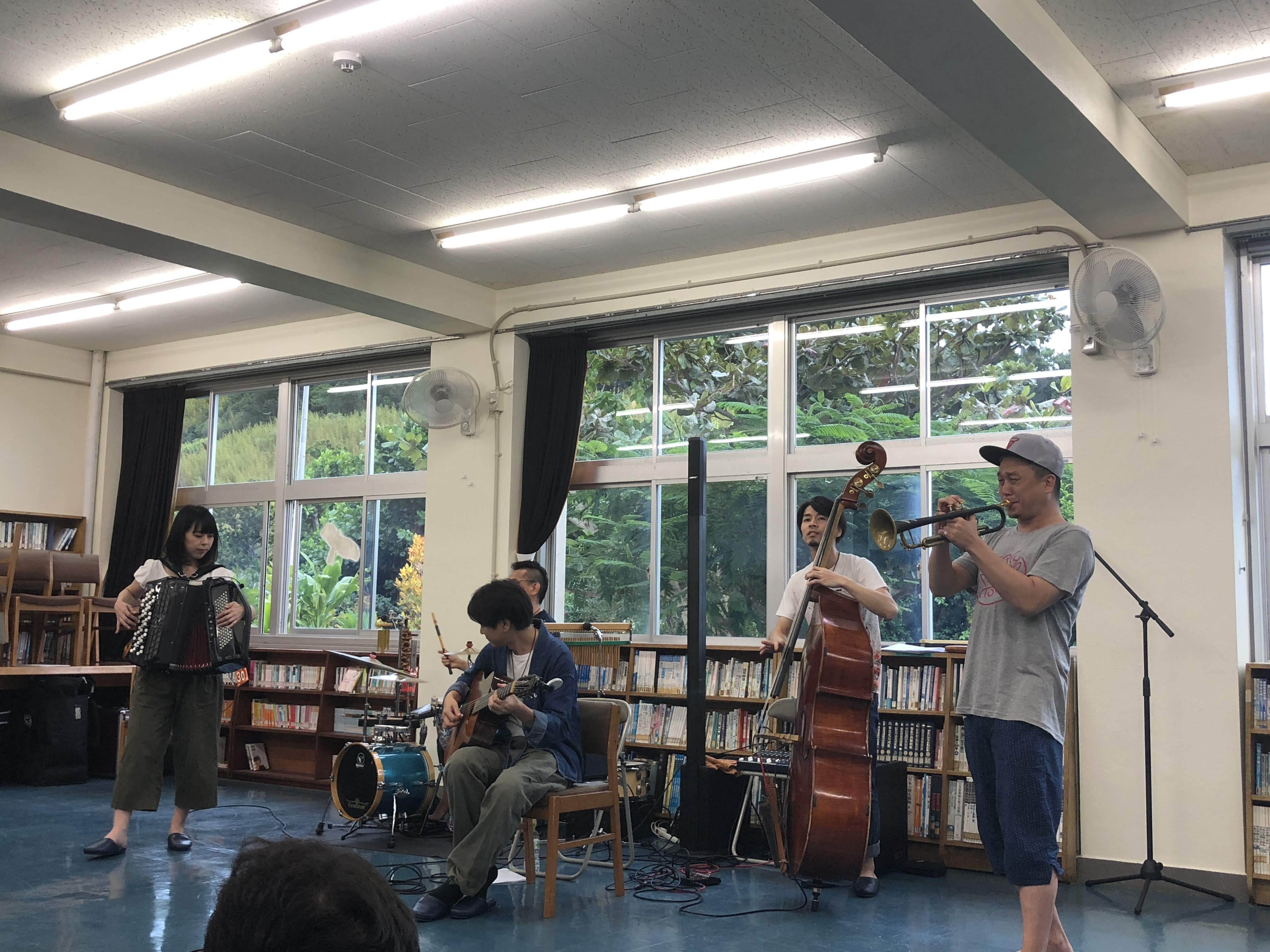 BimBomBam楽団のみなさんがはじめて母島に来島したとき、この想いを汲んでくれて、オフの時間を惜しまずに、子どもたちに音楽教室を開いて、たくさんの時間を共有していただきました。