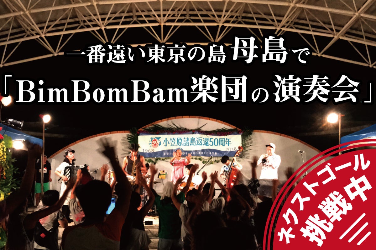 日本全国で精力的に活動するBimBomBam楽団のみなさんのスケジュールを6日間確保し、そしてメンバーとスタッフの分の渡航費やイベント運営費の資金を集めて、有志の自力でBimBomBam楽団の母島ライブを成功させたい!
