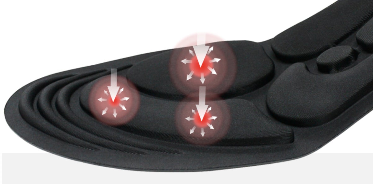 人間工学に基づいた原理を使用したエアバッグ設計。体重の圧力に応じて自動的に調整され、心地の良いフィットを実現し、効果的に足への負担軽減をサポートします。