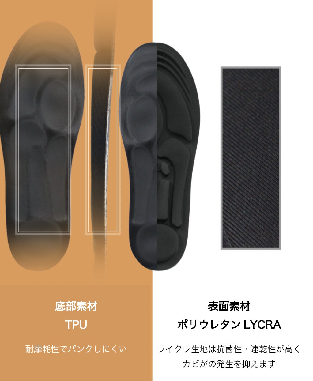 JFT 3Dスポーツインソールには、高品質の耐摩耗性TPU と抗菌性が高く通気性の良いポリウレタンLYCRAが採用されています。耐久性、通気性、抗菌性に優れたインソールです。