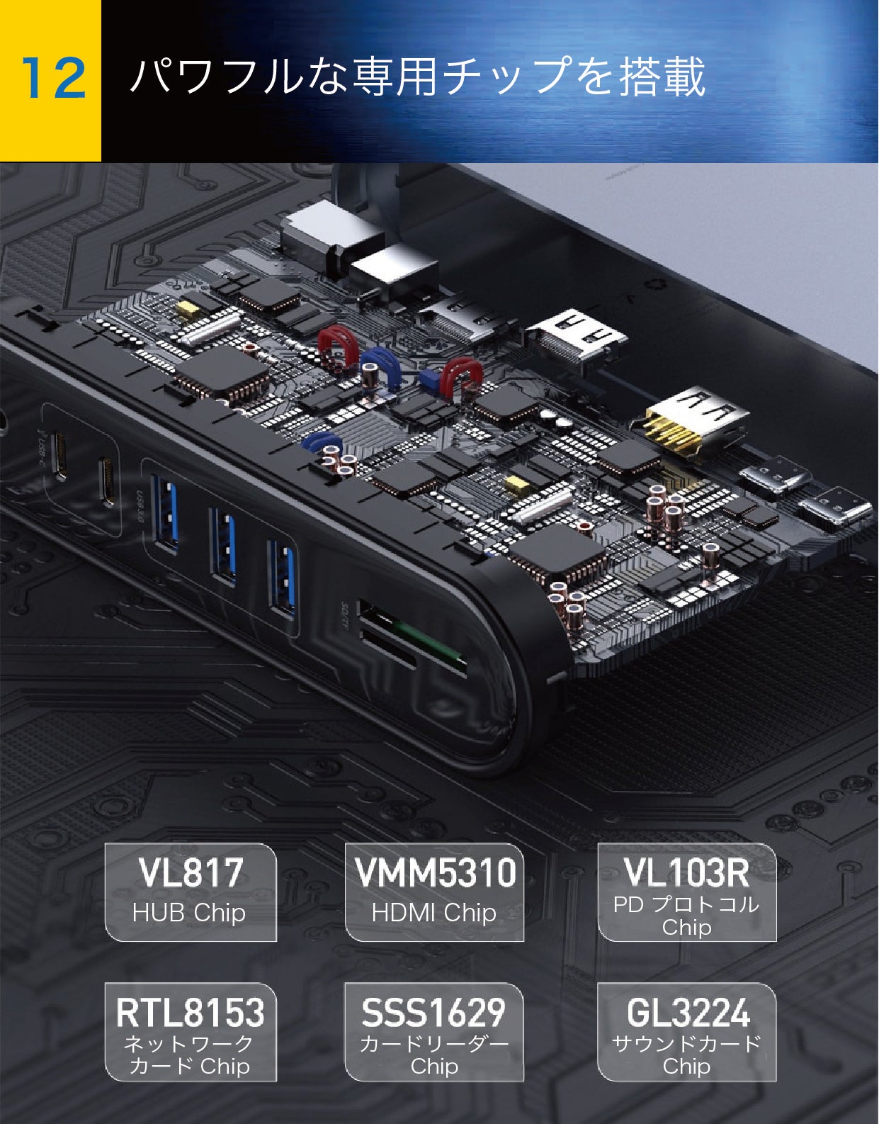 純正のVL817マスターチップをはじめ、【スマート・ステーション】に搭載されている各機能を制御するための専用チップが6つ搭載されています。これらのチップが全ての機能を速く正確に処理します。
