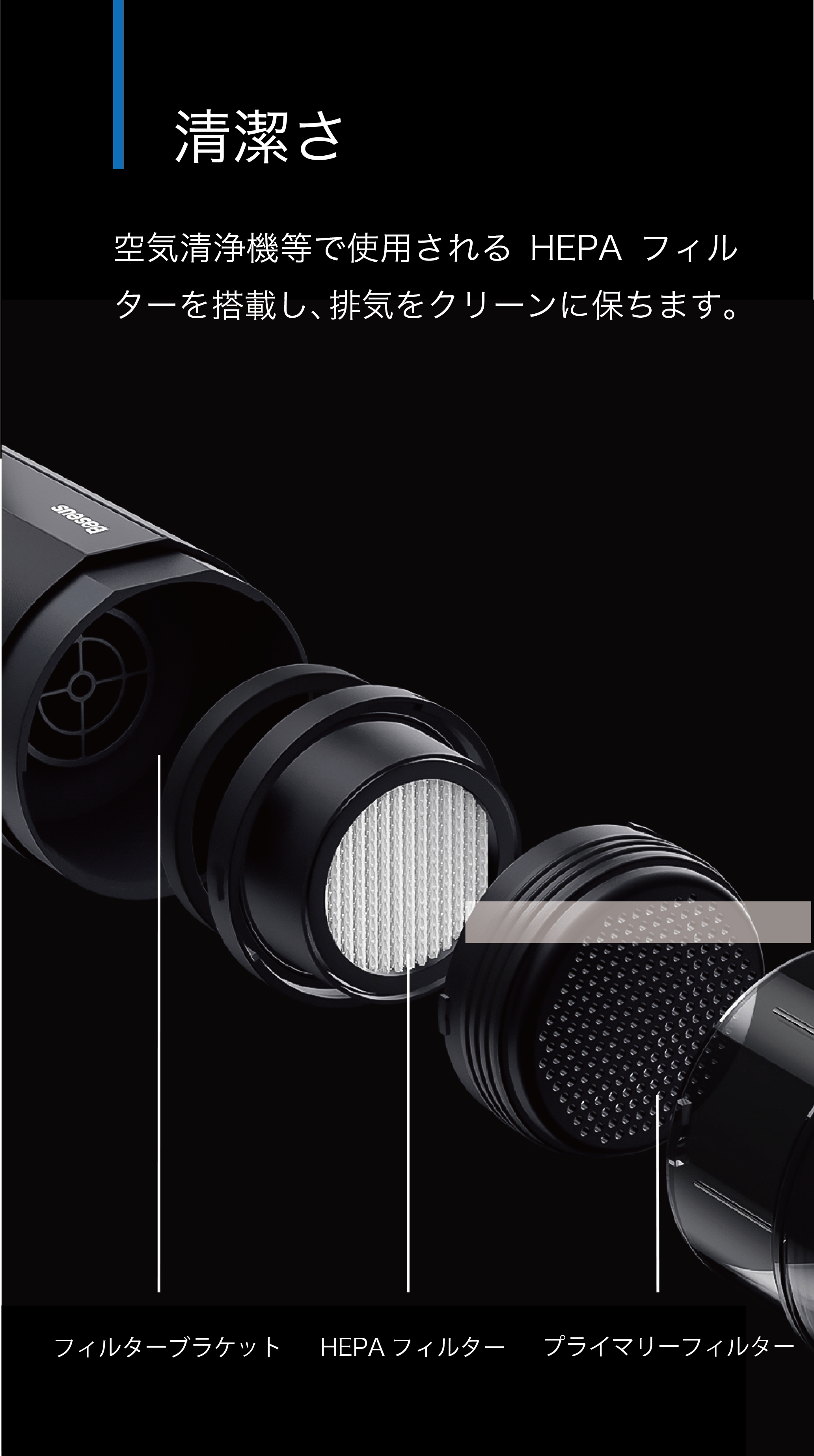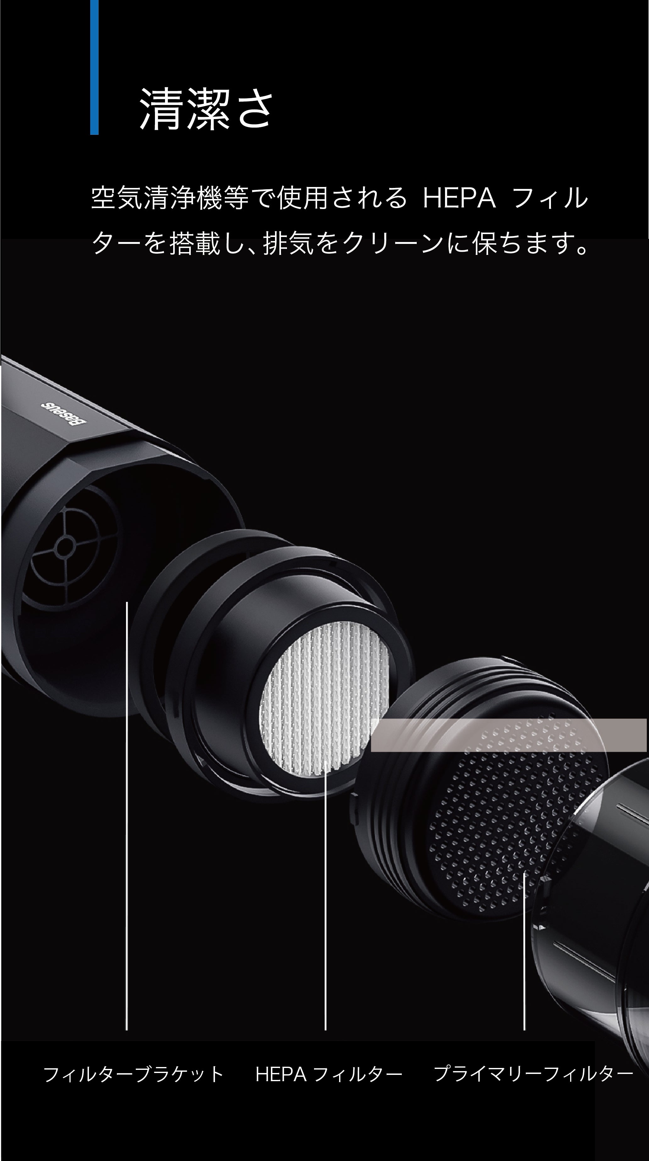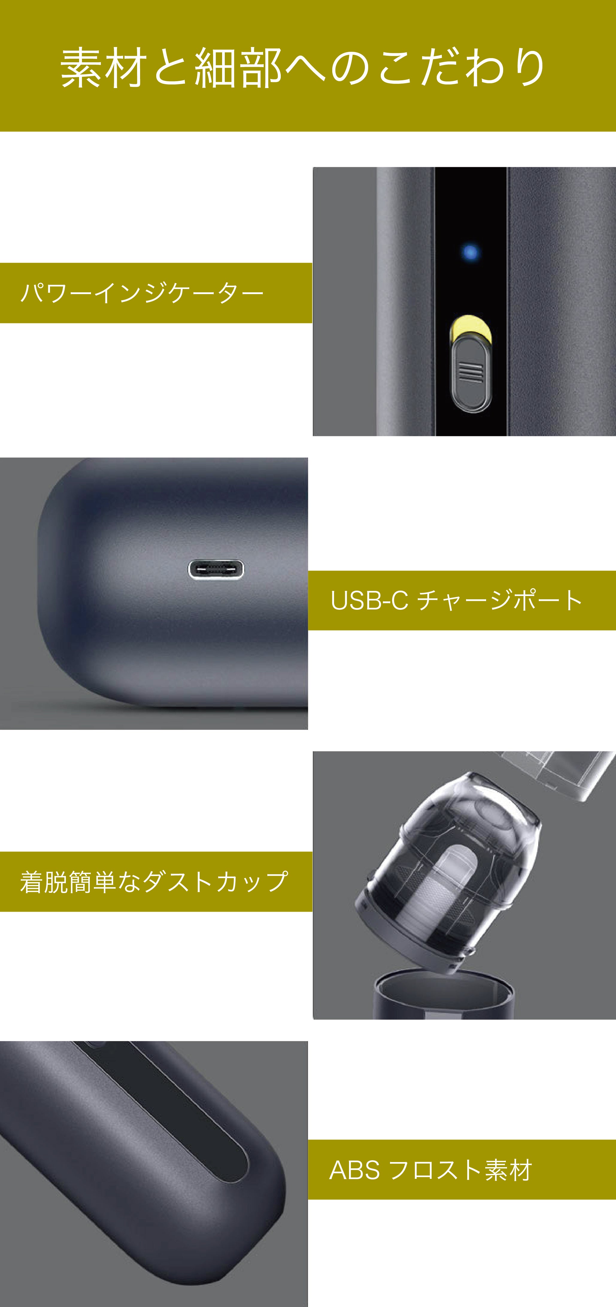 コンパクトながら強力な吸引力で、お部屋や車のゴミやホコリを一掃します。