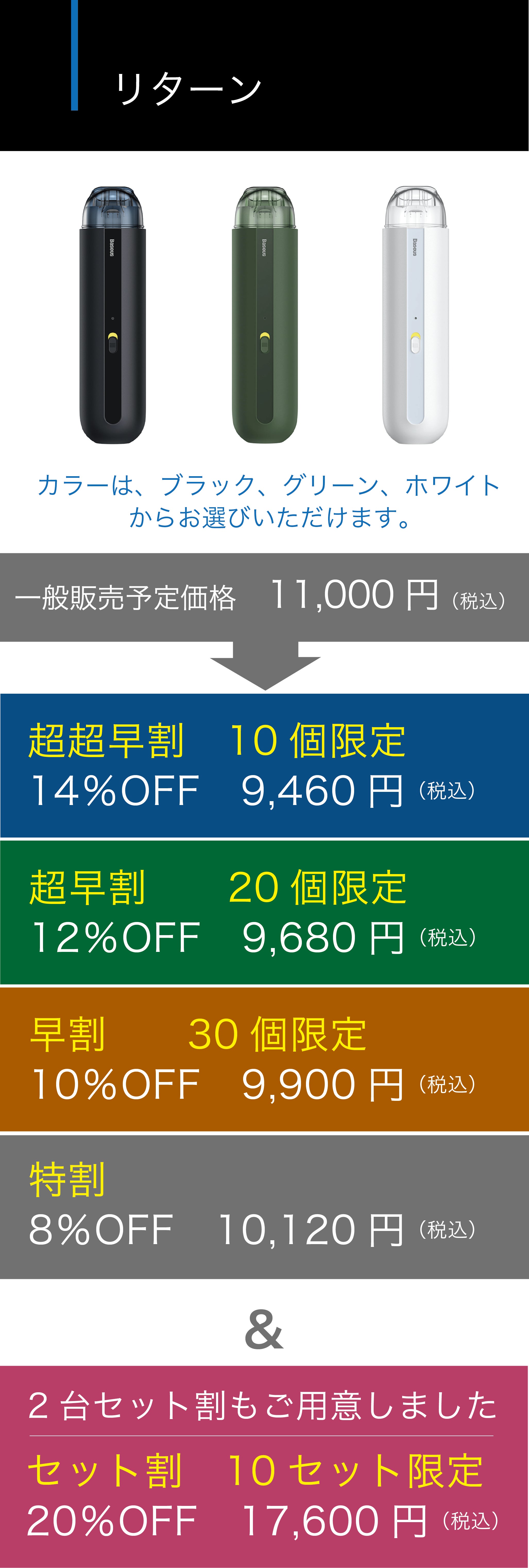 ※本プロジェクトを通して想定を上回る皆様からご支援を頂き、現在進めている環境から量産体制を更に整えることができた場合、正規販売価格が販売予定価格より下がる可能性もございます。