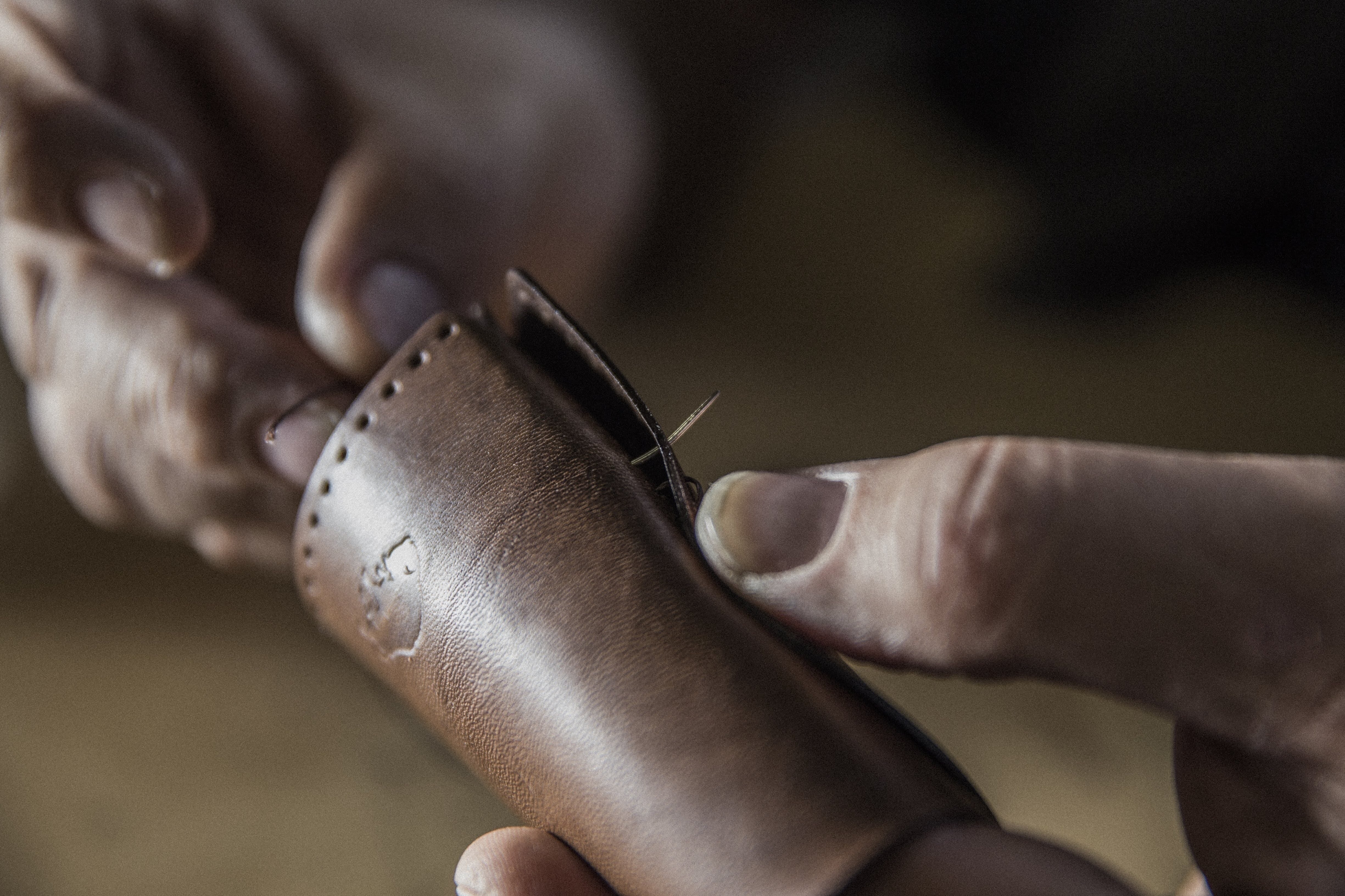 全ての製品に最高品質の革を使用し、美しい光沢と丈夫さを実現しています。プラスチック、ゴム、接着剤、裏地は使用しません。