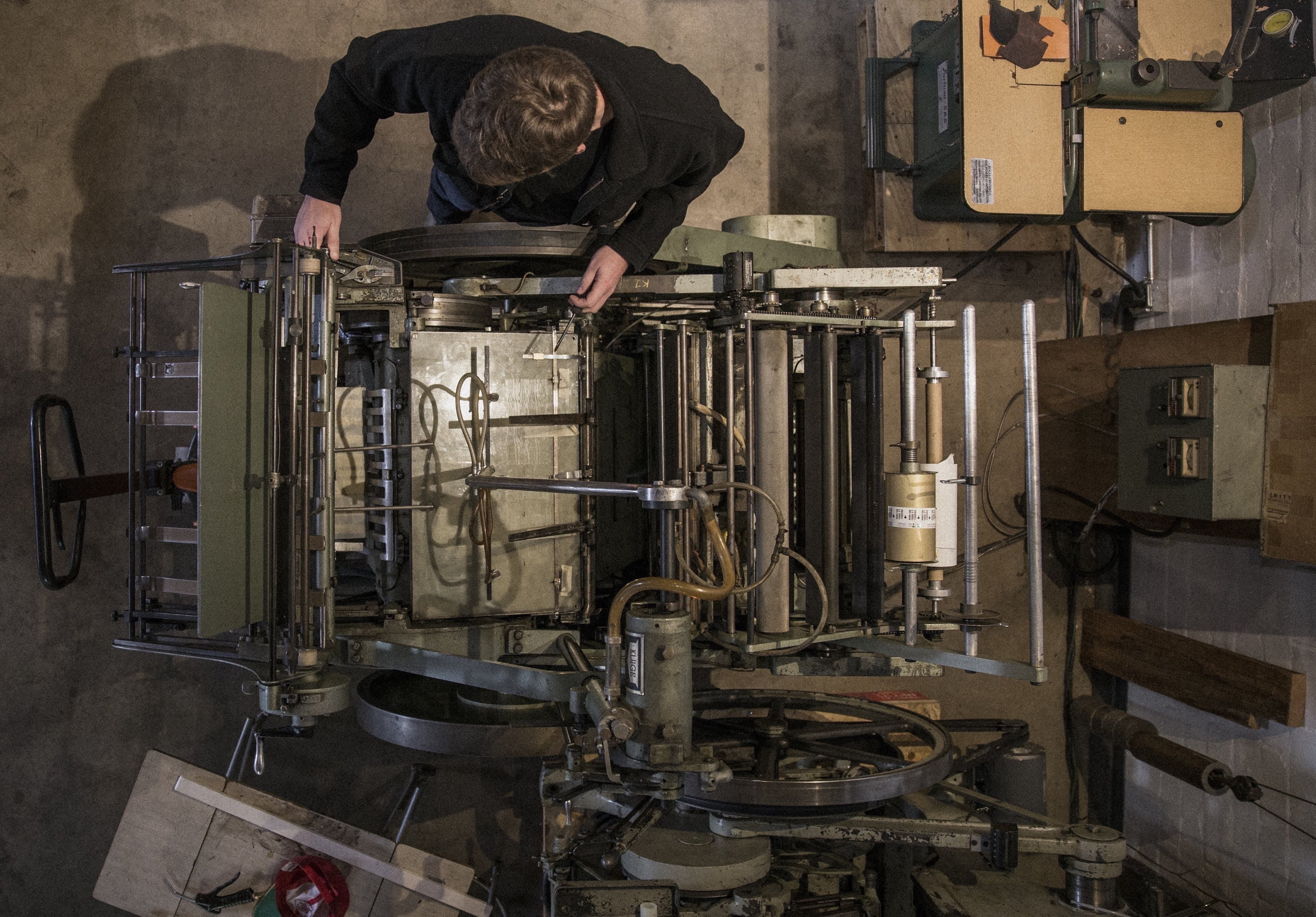 かつてアメリカ経済を支えてきた多くの小規模生産業は経済危機の中で閉鎖を強いられ、同時に熟練した職人や製造技術が失われていきました。【EZRA ARTHUR】はアメリカの歴史ともにあるこれらの技術を守るため、アリゾナ州フェニックスの倉庫街で、100年前の工具を揃えた工房を運営しています。