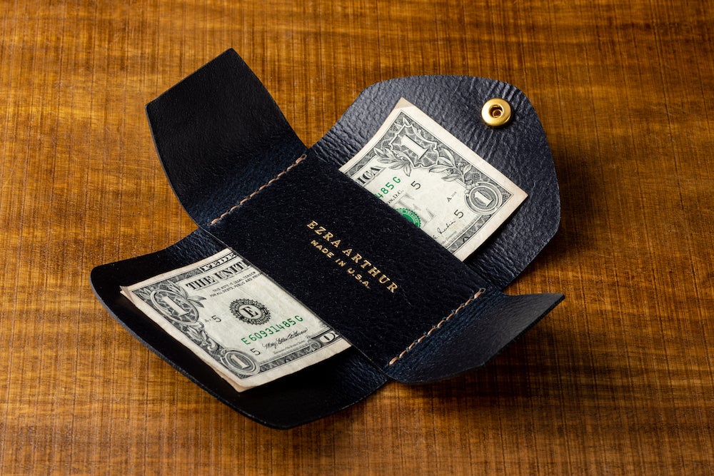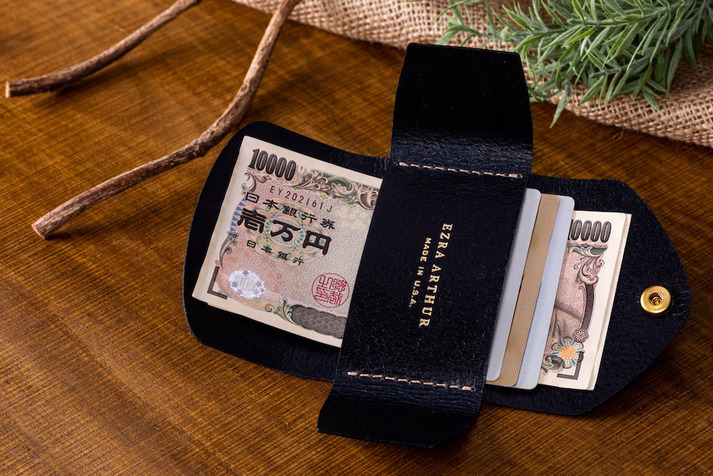 今回お届けするのは、【EZRA ARTHUR】スナップポーチです。このスナップポーチは特にシンプルなデザインで、お札やクレジットカード、名刺入れに最適です。