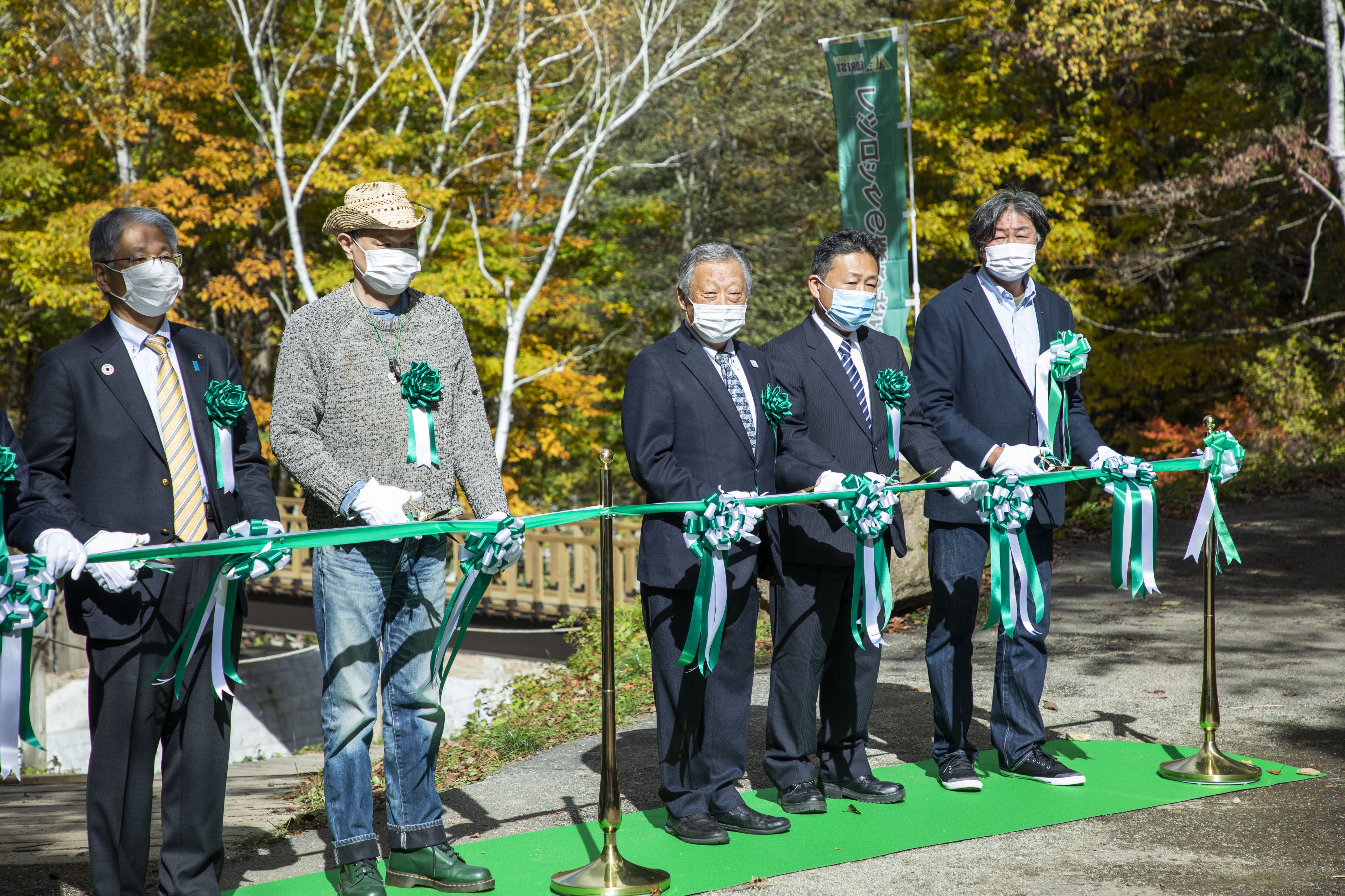 湯沢町 田村町長、新潟県南魚沼地域振興局 松田局長、プリンスホテル 常務執行役員 苗場地区総支配人 徳永様、スマッシュ 日高代表らにご参列いただき、雨上がりの清々しい秋晴れの中、テープカットを行いました。