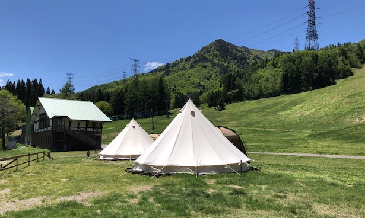 苗場プリンスホテルさんに協力していただいた、グランピングテントコース。フジロック期間中には外向けに出されたことがないレアな案件です。その場所はグーグルマップでも確認することができます。ちょうど、フジロックのキャンプサイトから進むと、ピラミッドガーデンの手前あたりです。