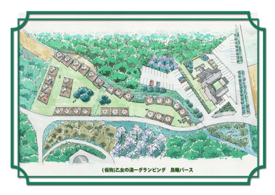 ・グランピング施設は隣の空き地にテント30張りとデッキを新設予定。