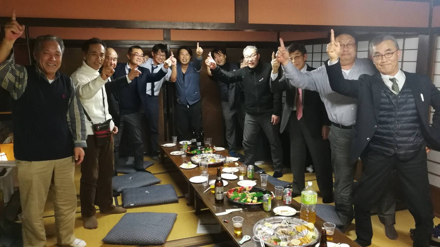 復活を誓う決起集会にて。地元の皆さんと手を取り合い、乙女の湯を復活させます!