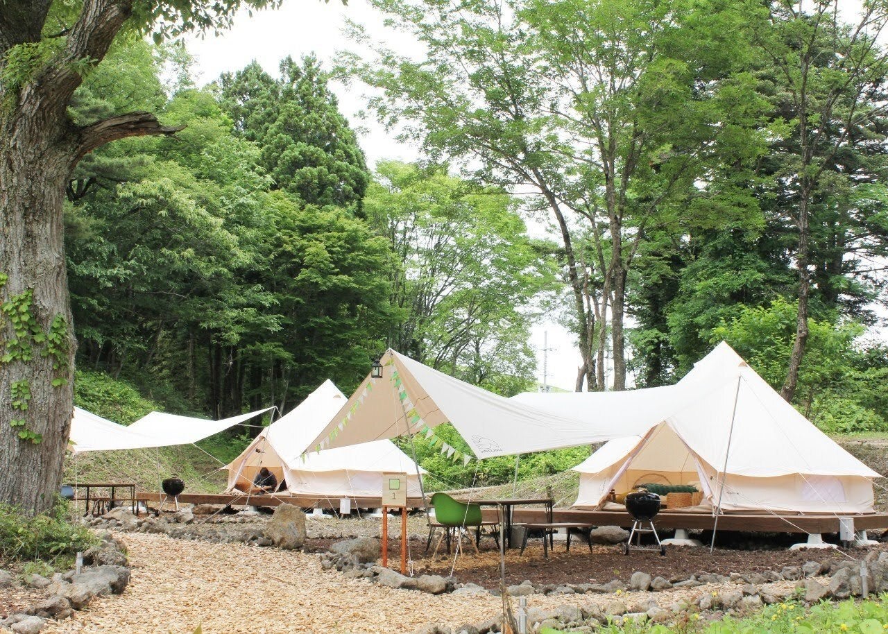 グランピングイメージ。乙女の湯の温泉と、大自然でのアウトドアを楽しめる