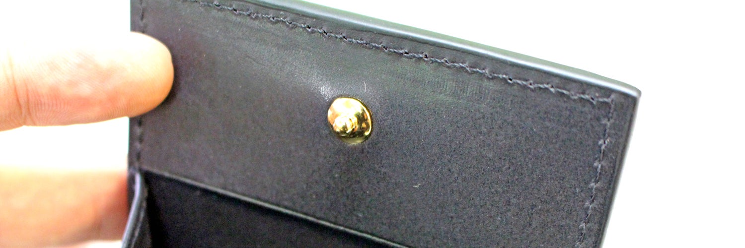 『裏地生地を使わない革だけで作った小銭入れ』