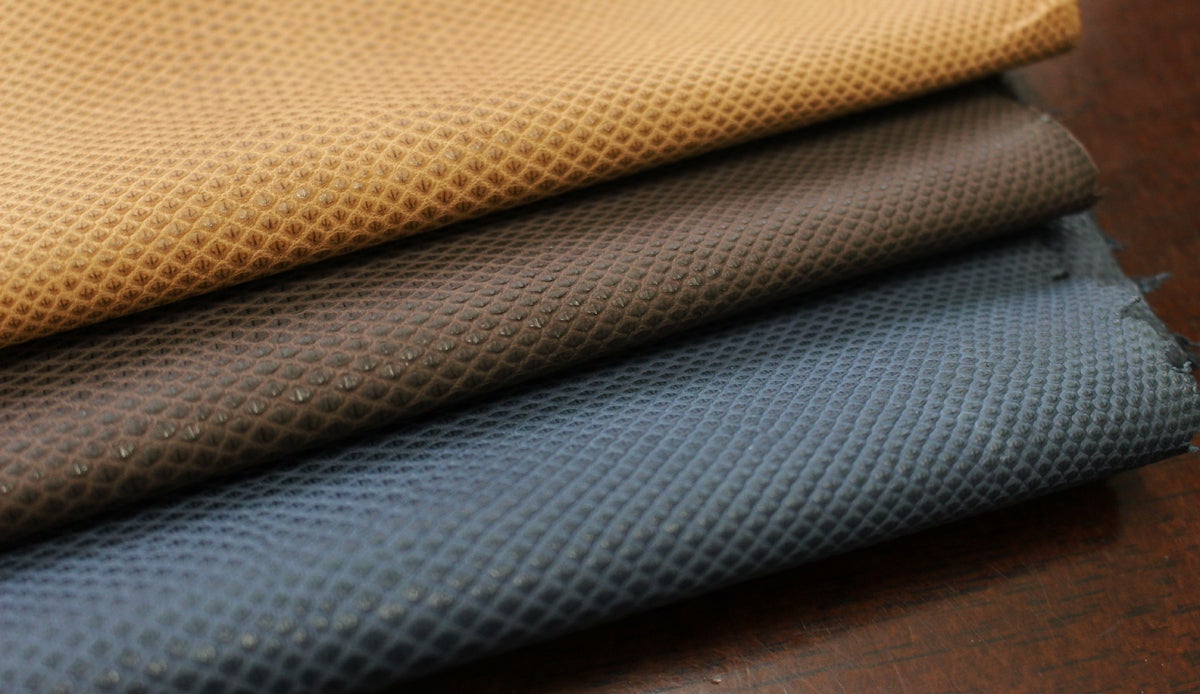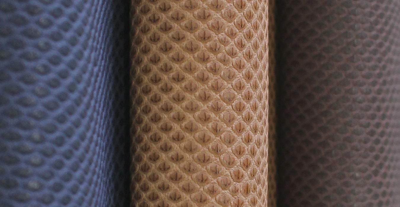 規則的なウロコ模様は、パイソンのようにめくれる心配もなく、牛革のようにひび割れる心配もない、それでいて天然皮革の美しさを感じさせてくれます。