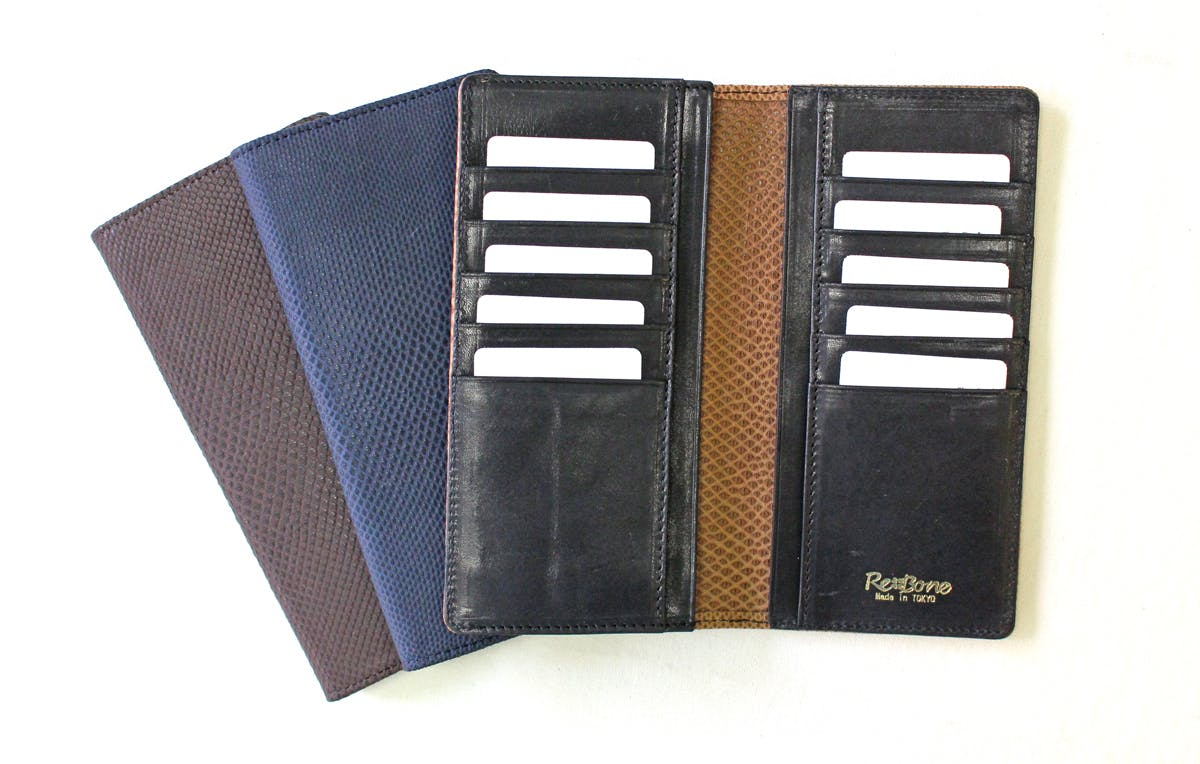 特許取得(特許第6043905号)のリボーンウォレットをはじめとし、異なるエキゾチックレザーを使ったコラボ等で、長財布を製品の中心として活動していましたが、今後はユーザーのニーズに応えたバッグや革小物など、アイテムの幅を広げて展開予定です。