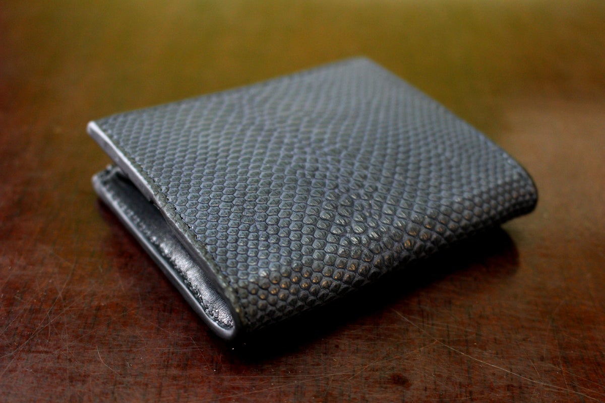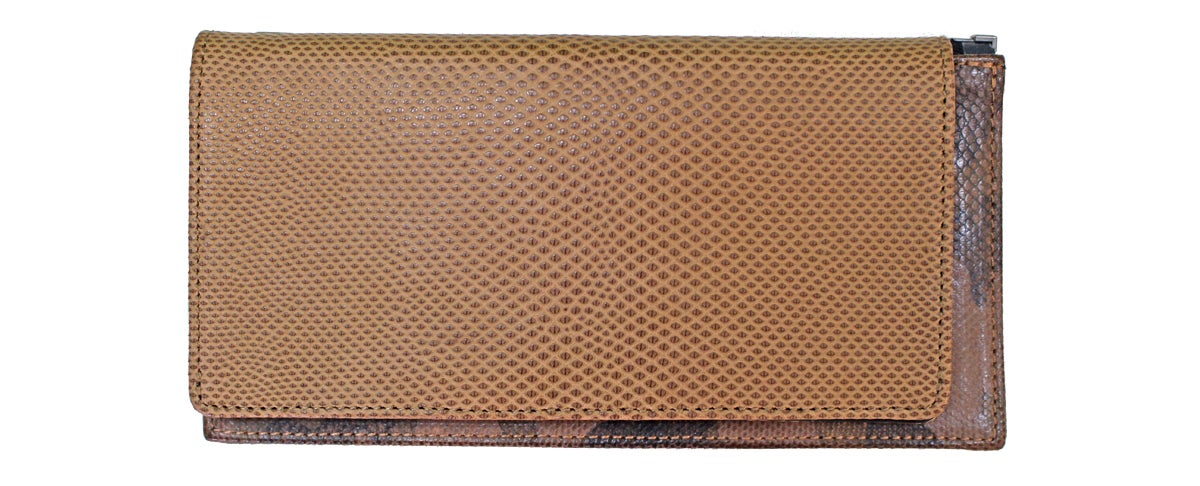 ヤスリミズヘビとも言われ淡水に生息するヘビ革ですが、エキゾチックレザーの中でも一番の軽量を誇り、尚且つ伸縮性に富んだ非常に丈夫な革です。