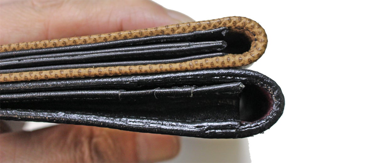革の断面を何度も磨きあげるコバ磨きにも職人のこだわりを籠めております。