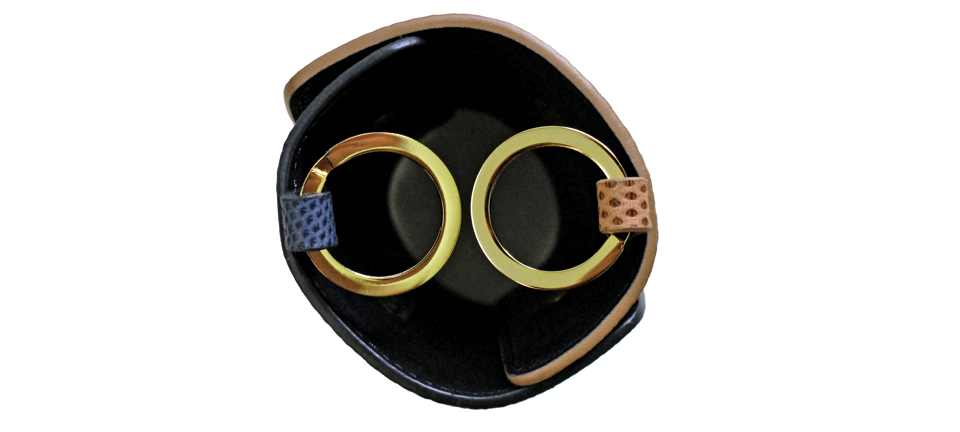 カロングの魅力をより一層引き立てるサドルレザーやホック、手作業による磨き工程を取り入れた18金メッキリングなどにこだわりを感じていただけるものとなっております。