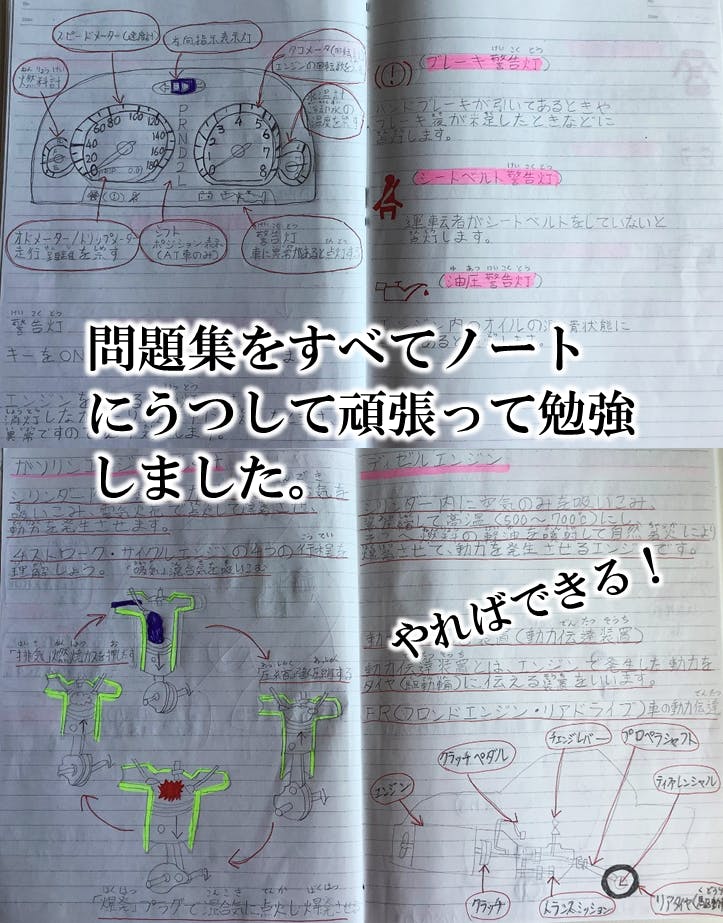 ↓自分で工夫して勉学しました。テキストの内容をノートに書き写して覚えてます。