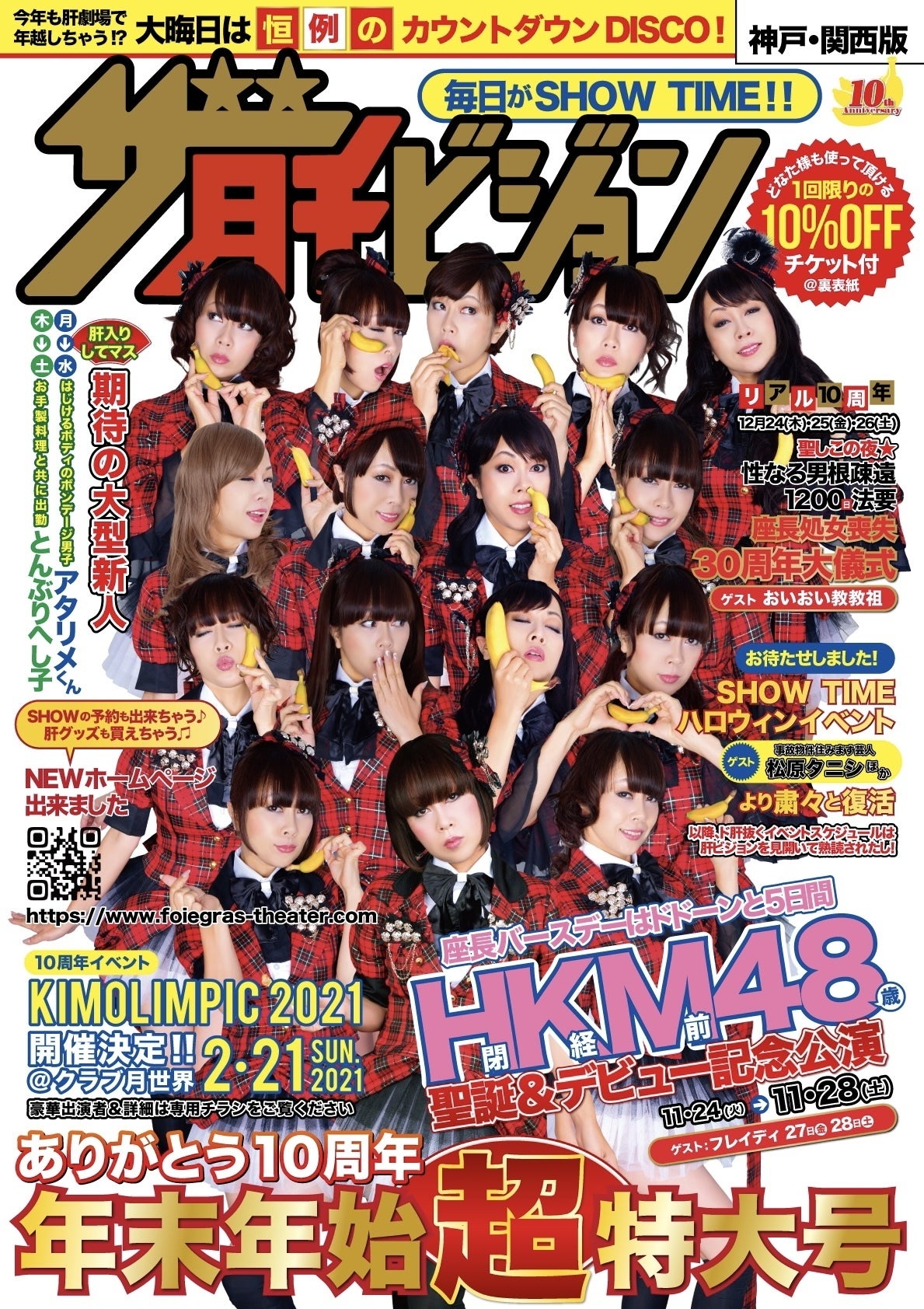 ド肝抜く成人式、開催決定です!真の成人に捧ぐ一大スペクタクルSHOW‼︎電撃ネットワーク・コウメ太夫・田代まさし他、豪華過ぎるゲスト陣と肝(フォアグラ)劇場が織り成す、驚愕の3時間です。老いも若きも、1月15日(旧成人の日)は月世界に集まれ!チケットご購入は、広告のQRコード・肝劇場ホームページ・または当方DMまでお気軽にお問合せくださいませ。こんなイベント、またとないよー♪肝(フォアグラ)劇場 12周年×立ち呑み 半立ち1周年記念『人生2.5度目の成人式典』◾︎会場クラブ月世界神戸市中央区下山手通1-3-8 月世界ビル1階◾︎開催日時令和5年1月15日(日) 18:00開場/19:00開演◾︎チケット料金(全席指定席)松席VIP ¥15,000 完売 ※お問い合わせ下さい。松席 ¥13,000竹席 ¥10,000梅席 ¥8,000*ドリンク代別途¥600▪︎CAST電撃ネットワークコウメ太夫田代まさしファイヤーヨーコMIWA ROCKバビ江ノビッチオナニ渕剛Harako/司会(声)~肝(フォアグラ)劇場・肝団員~ ぬぎたろう(あごちゃん&パンツくん)アタリメくんしゅり んぷアユウルカCA ANA半立ちダンサーズ ミゾベヒロミ▪︎STAF 作・演出:ミゾベヒロミ舞台監督:八木沢清俊音響効果:小村建介(神戸ロバアタ商會)写真撮影:タナーキー 横山創一動画撮影:とみきんトリオスタイリスト:高松由美(alex)広告デザイン:アベナオコタイトルロゴ:KSakurai◾︎主催肝(フォアグラ)劇場神戸市中央区中山手通1-6-5 成田ビルB1F☎︎078-331-7611https://www.foiegras-theater.com◉ご入場の際は、必ず電子チケットをお手元にご用意下さい。◉新型コロナウイルス感染症対策にご協力下さい。