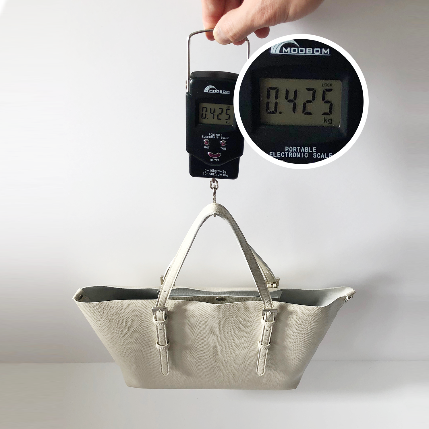適度な厚みとハリがあるボディながら、Mサイズでわずか450g前後という軽さを実現!一般的な同サイズの本革バッグと比べて半分以下の重量です。