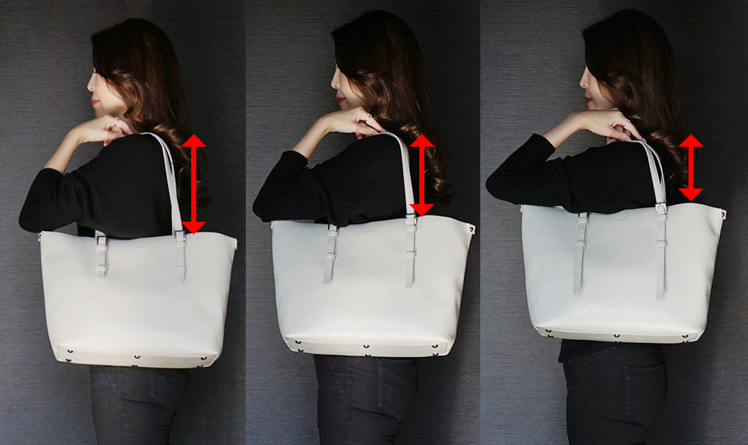 ②ベルトタイプのストラップは長さを3段階で調整でき