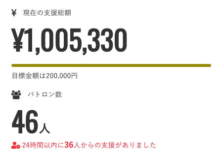 昨日の12時にプロジェクトをスタートして15分で目標金額を達成することができました。