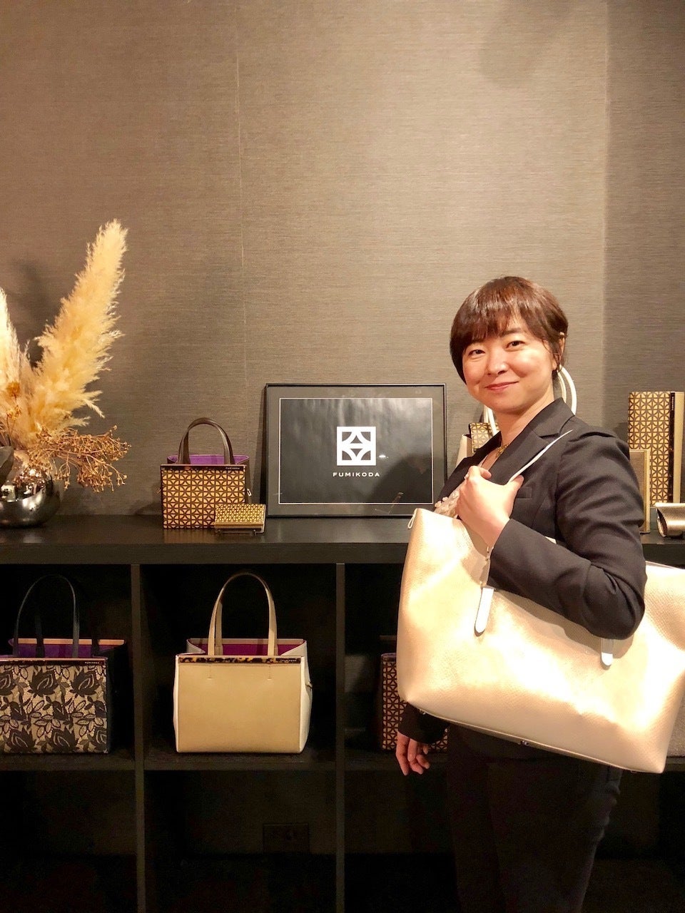 FUMIKODAの大石と申します。このプロジェクトの担当をしております。ユニセックスの超軽量トートバッグは、アニマルフリー、メイドインジャパンですので、軽くて丈夫です。詳しくは、プロジェクトの内容をご覧いただければ幸いに存じます。本日は、アイボリーパイソンのMサイズを持ってみました。驚く軽さを是非、実感してください。