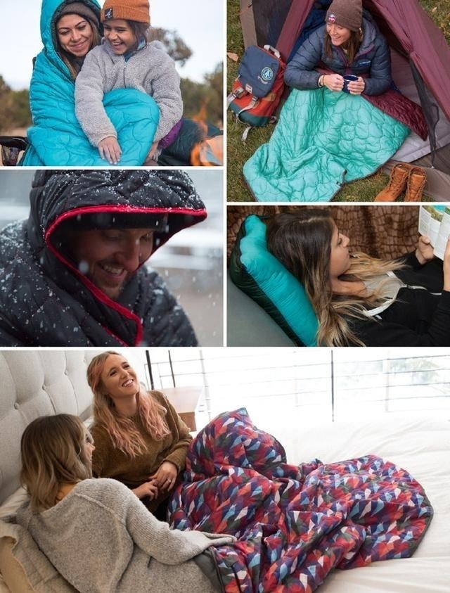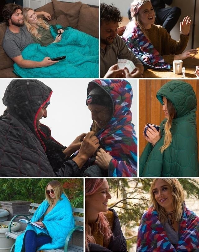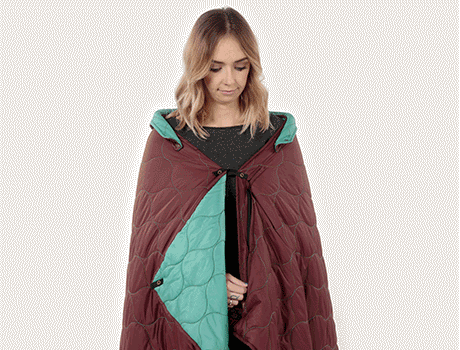 ブランケットとしてだけでなく、フード付きポンチョ、クッション、レジャーシートとしてもご利用頂けます。撥水機能も搭載! さらに他の機能もございます。