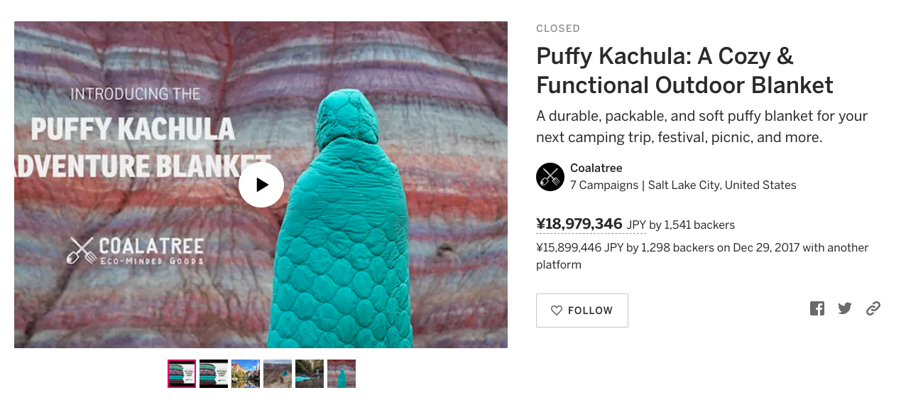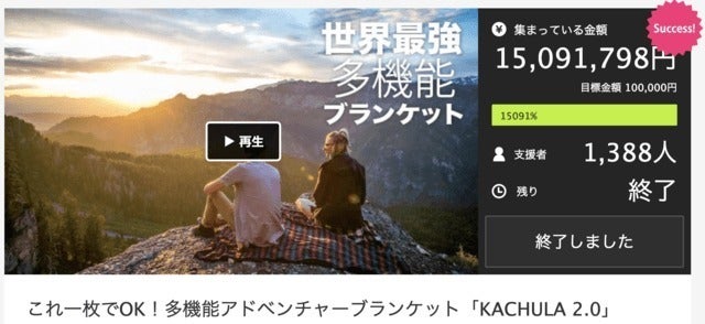 これまで多くのシリーズを展開し、前作「Kachulaブランケット」は国内でも1,500万円の資金調達に成功した大ヒット商品となっています。もちろん今作も本場、米国でも2,000万円近い応援を獲得した実力ある一品です!