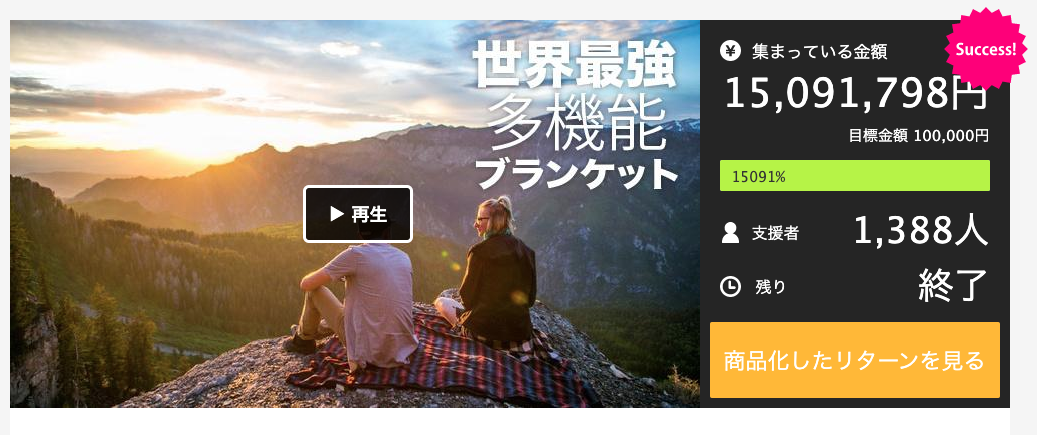 2018年9月にクラウドファンディングで約1,500万円の支援をいただいた超多機能アドベンチャーブランケットです。