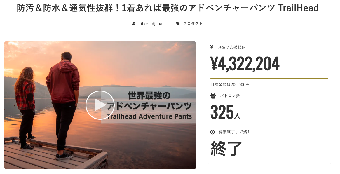 2018年に「Kachulaブランケット」と「TrailHead Pants」、2019年に「TrailHead Shorts」の3商品を日本へ展開。すでに国内でも累計3,000万円以上のご支援をいただき流通しています。