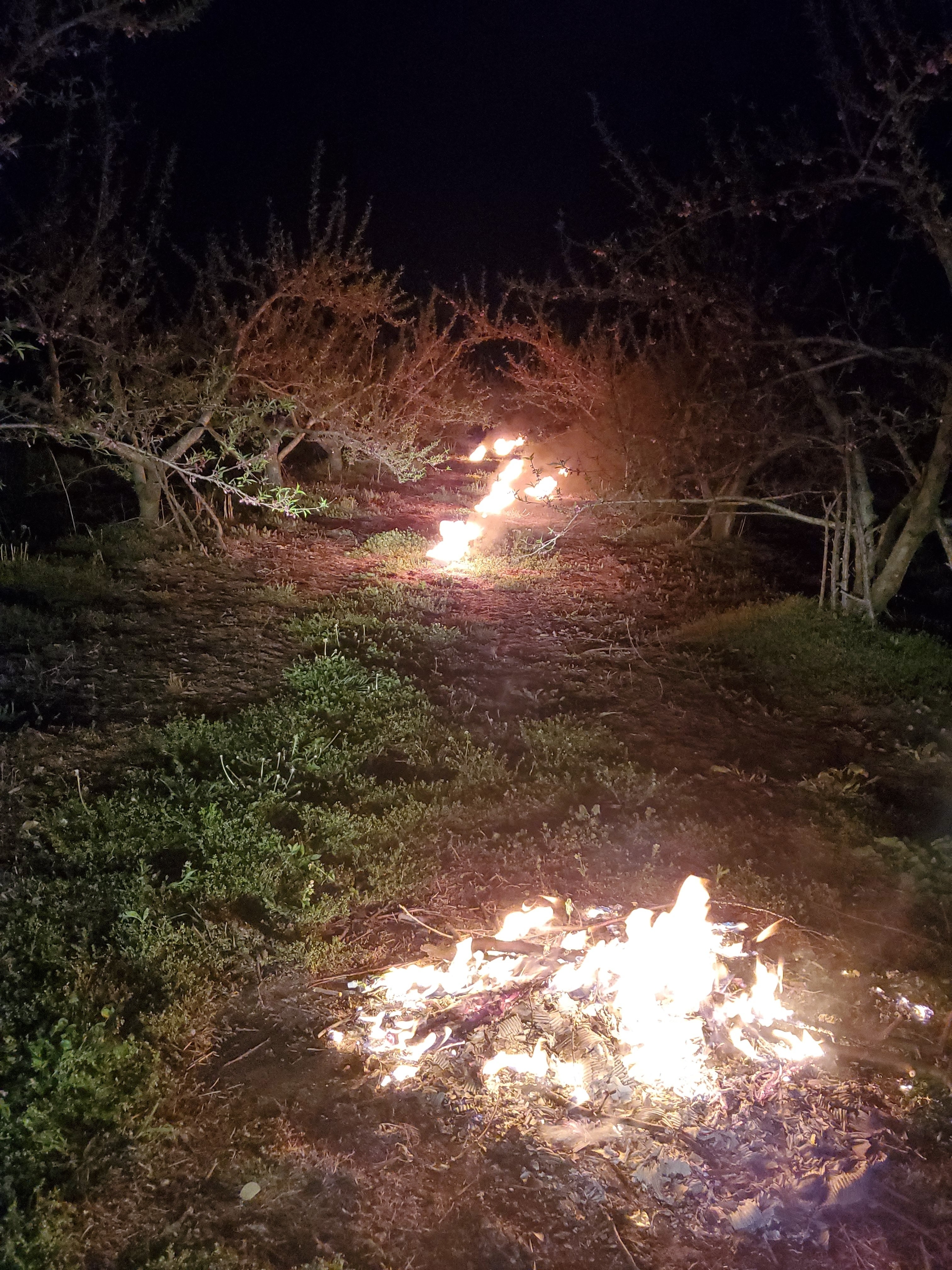 令和3年4月10日に夜間から早朝までの間にマイナス6度まで下がり、林檎の花が凍結してしまいました。