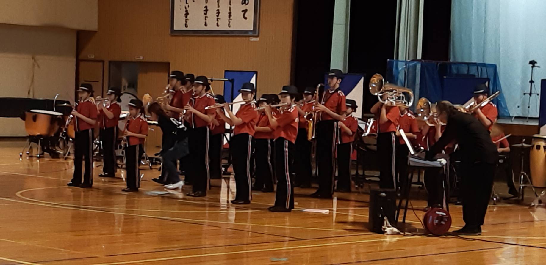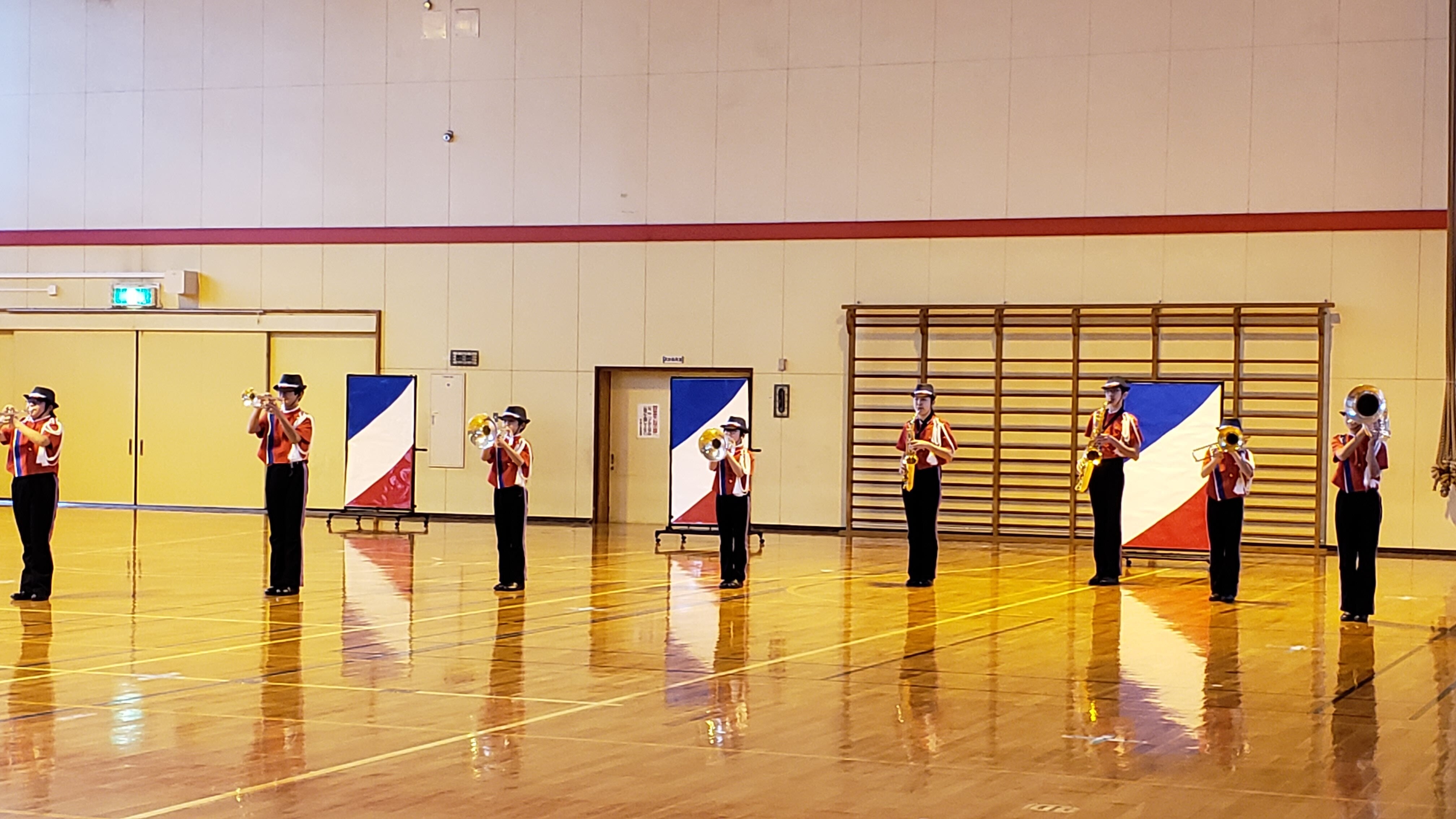 先週の金曜日、学校の全校朝会で演奏させていただきました。いつも一緒に学校生活をおくっている全生徒、先生たちの前での演奏は緊張や気恥ずかしさ等ありながらも、堂々と演奏できたと思います。当マーチングバンド顧問(*^^*)時期は少し早いですが、実りある実質的な壮行会となりました。