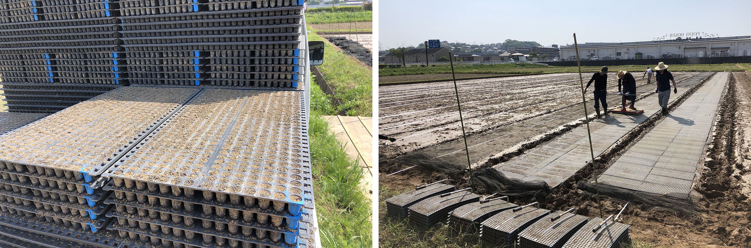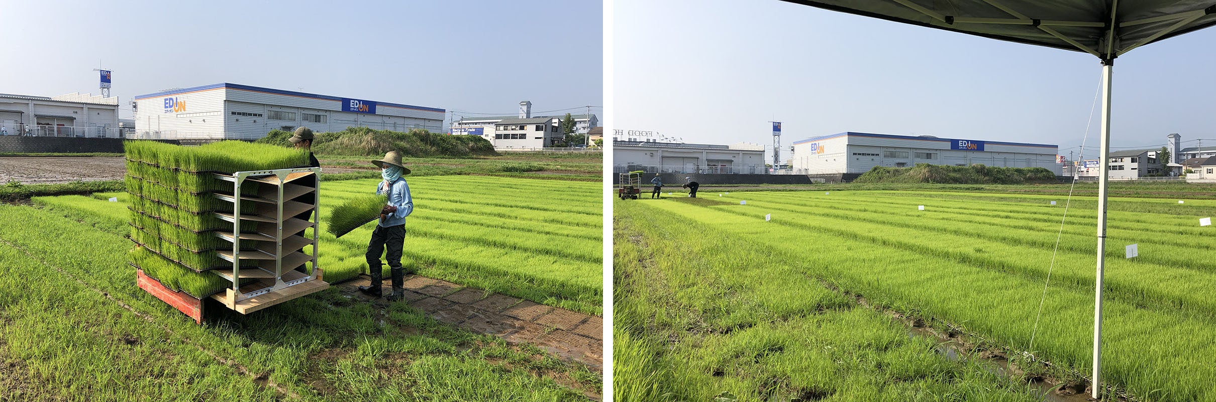 苗作りでできた立派に育った苗。これらを土から剥がし、田植えを行っていきます。