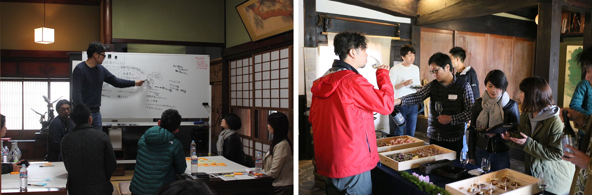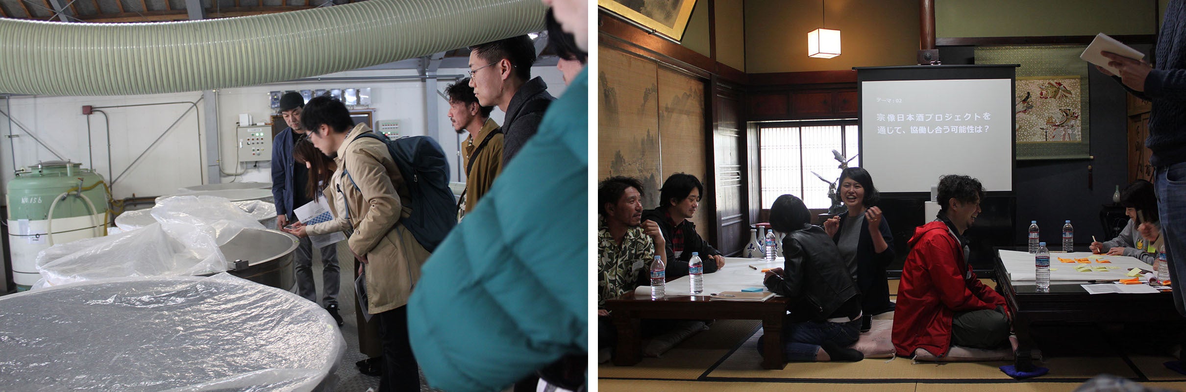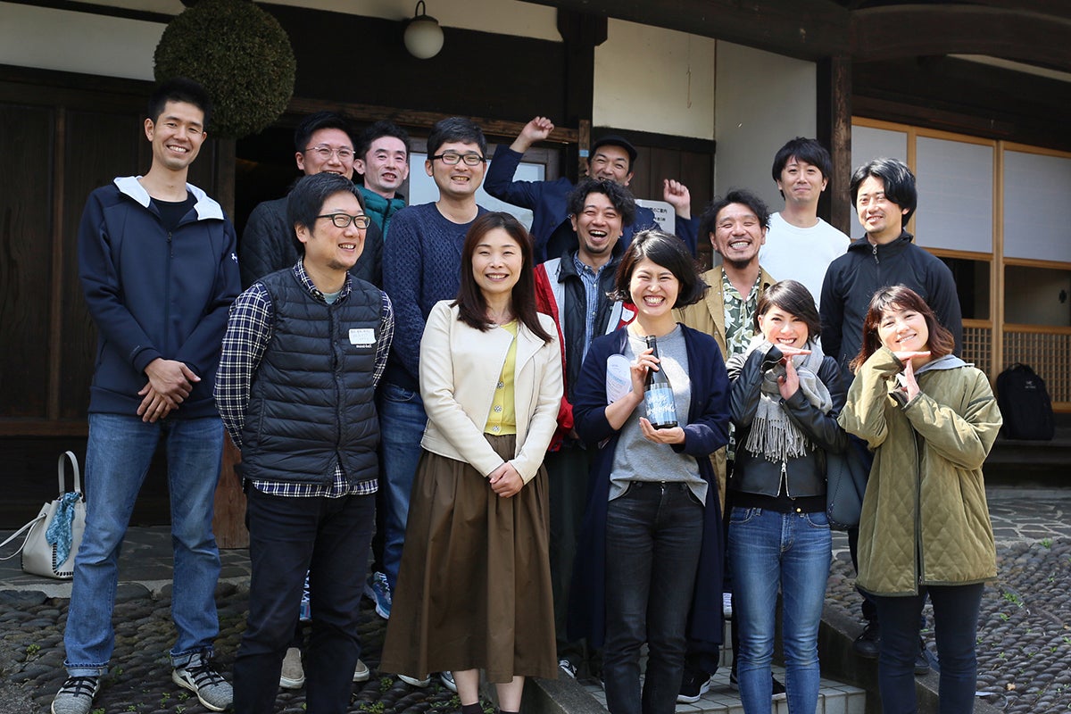 田んぼという大量の水を使う農業において、自然栽培によって川をきれいにし、その先の海がきれいになる環境回復を目的とした、宗像日本酒プロジェクトを飛躍させる上でも、今関わってくれている方々と想いを共有しようと、生産者である農家、製造者である酒蔵、流通の酒販店と飲食店、そして応援してくれる消費者が集結。発起人である福島の想いの共有、米の栽培方法、酒造りの現場見学を行いました。その内容を踏まえて、みんなで何ができるのか意見交換を実施。この会で意識が共有でき、「日本酒」というツールを通じて業界の垣根を越えて、お互いの仕事の中でできることを少しずつ持ち寄り、やれることをやる「トゥギャザーしよう!」の合言葉が生まれました。