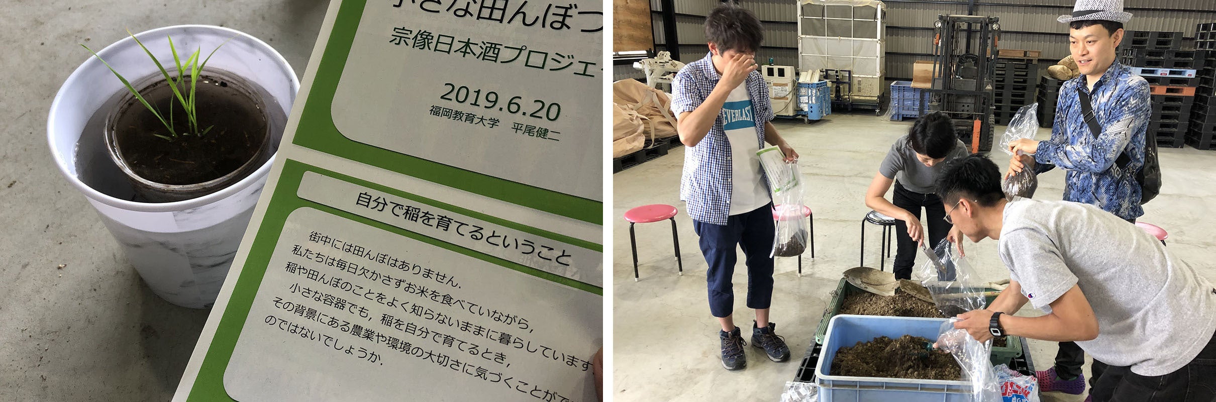 「“自然栽培での稲作は難しくない”このことを一般の人や周りの農家の人に知ってもらいたい。そして、自然栽培の稲作が広がることで田んぼを通る水がきれいになり、ホタルが帰ってくるような川になり、さらには海がきれいになる環境回復を目的とした活動です。」発起人、農業福島園 代表 福島のその想いがありました。そして、もともと全くお酒が飲めなかった福島が飲めたお酒、それが自然栽培の酒米から醸された阿蘇のお酒で、「自分もこんなお酒の酒造りに関わりたい、そしてそのお酒を飲みたい。」と、その時に感動した想いとが重なり、宗像日本酒プロジェクトは始まりました。