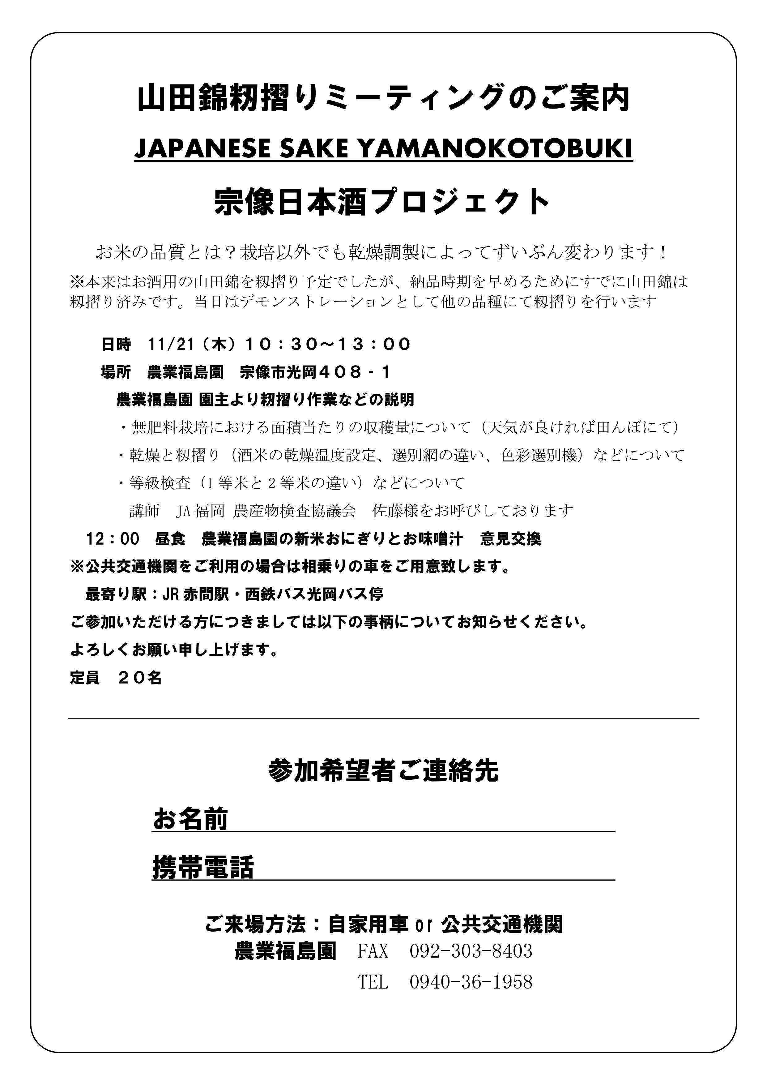 山田錦の1等米というのはなかなか難しい条件でしたが、福島はある秘策によって収穫できた山田錦を全量1等米で納品することができました。