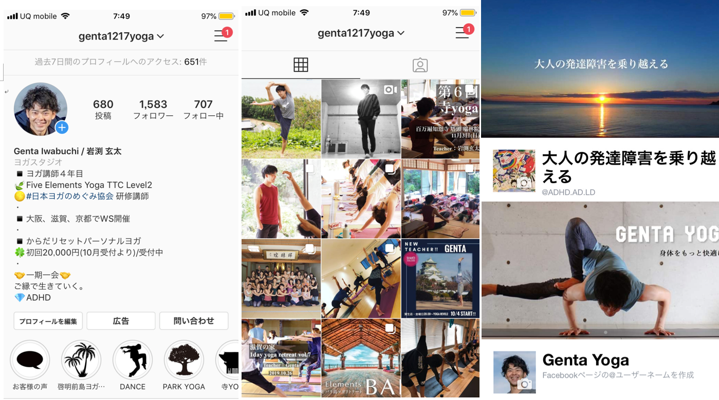 インストラクターとしての活動は主にInstagramとFacebookで発信しています。