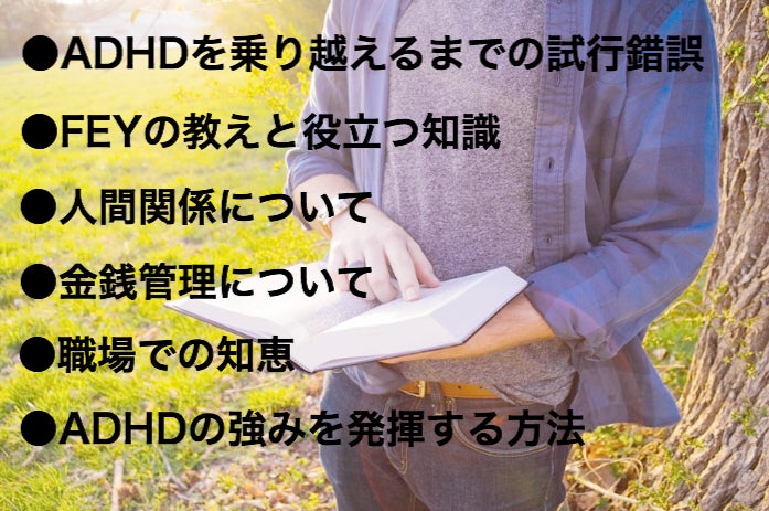 また、ADHDに対処するための情報を本という媒体にまとめることで、実際の生活でADHDに振り回されずに生活するのに役立つからです。
