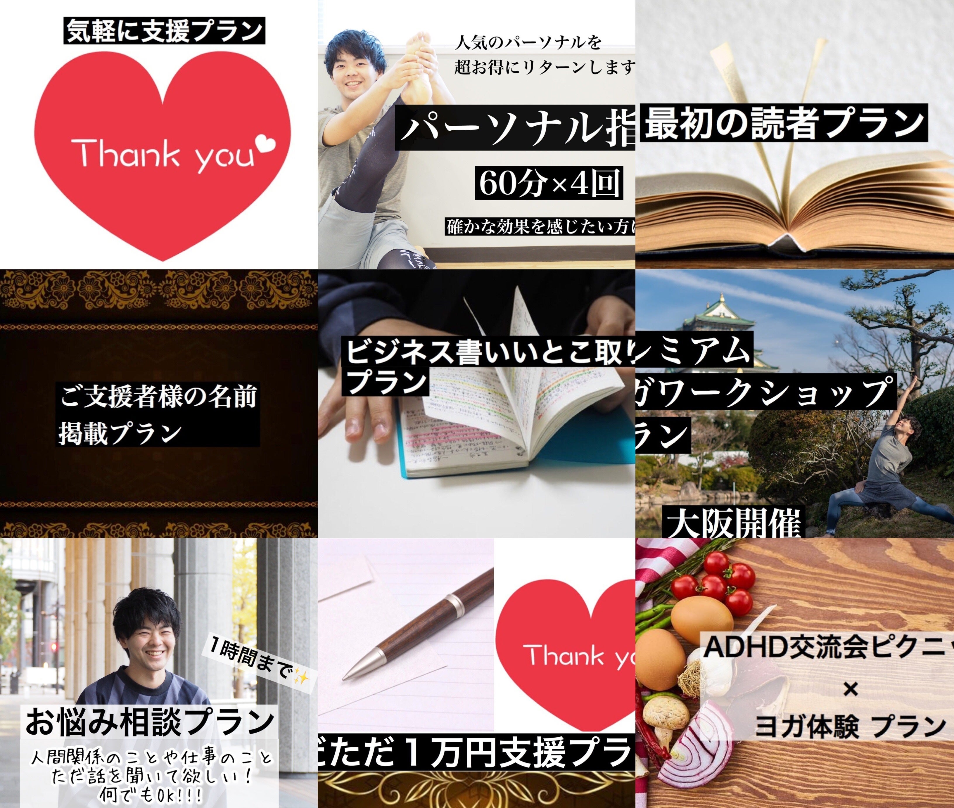 ご支援金額に応じて様々なバリエーションを用意しました。
