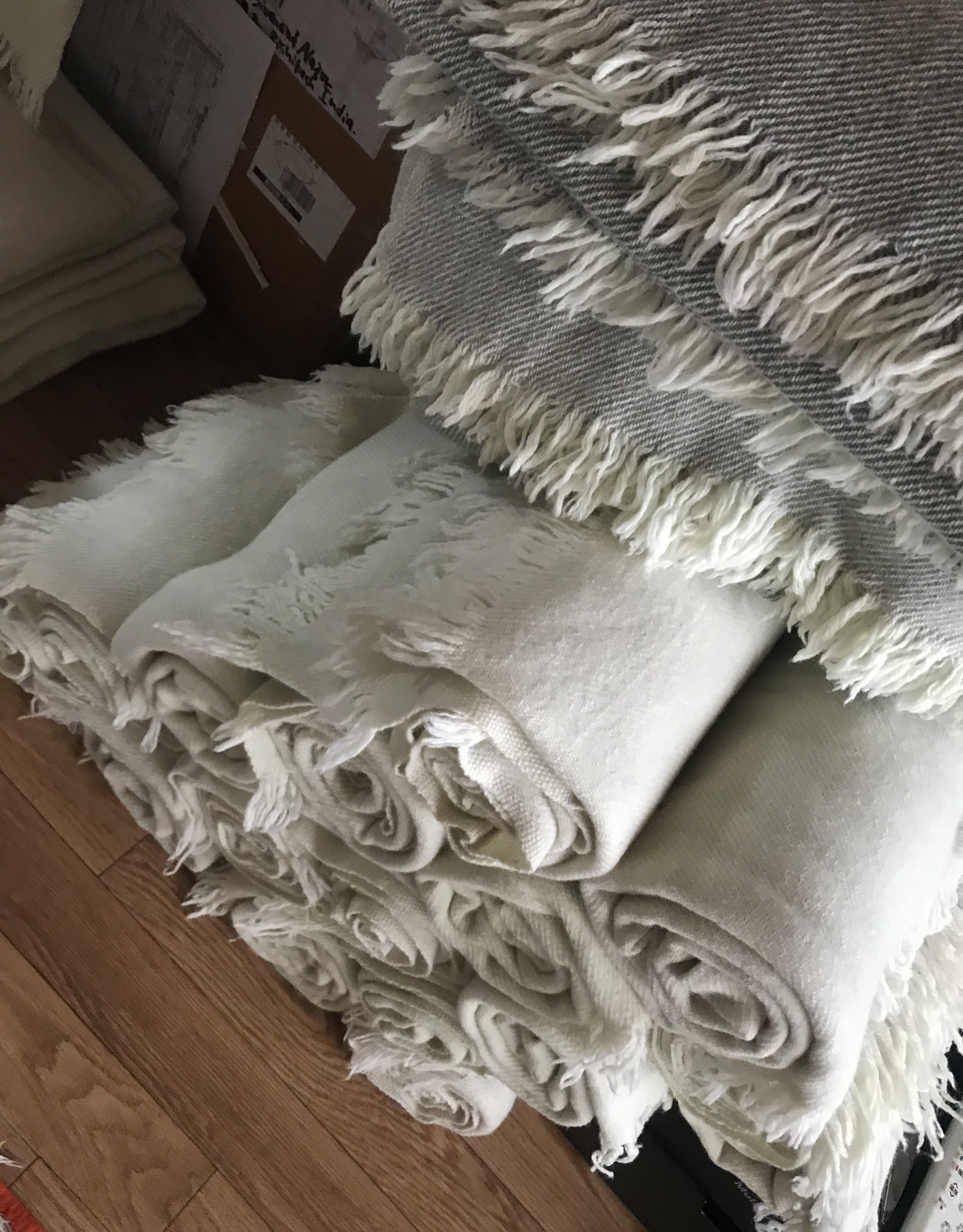 白のストールに黒い糸や、動物の毛が入った場合、予想以上に目立つことに気づいたからです。