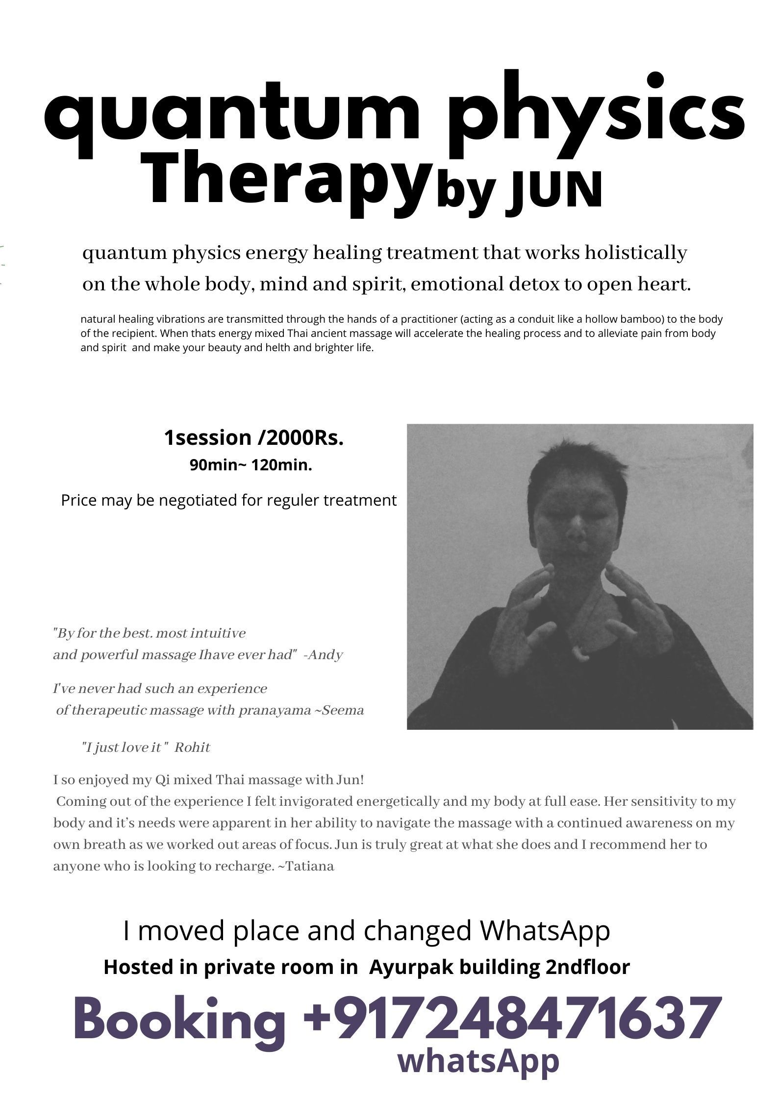 2年間のインドでのセラピーワークで変化し、進化したセラピーの様子は、フェイスブックページでご覧いただけます。現在は、クライアント様がたの感想を元に名付けたいただいたquantum physics therapy and
