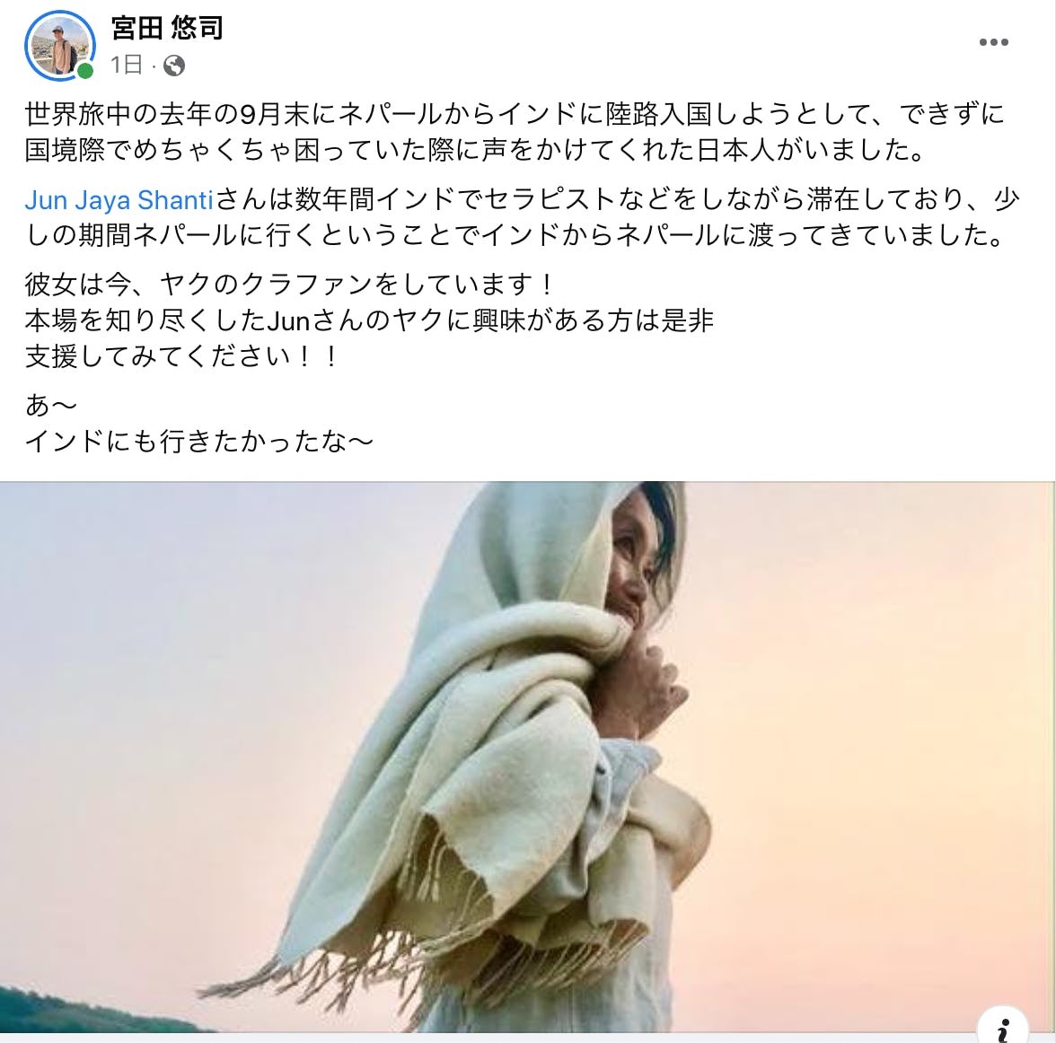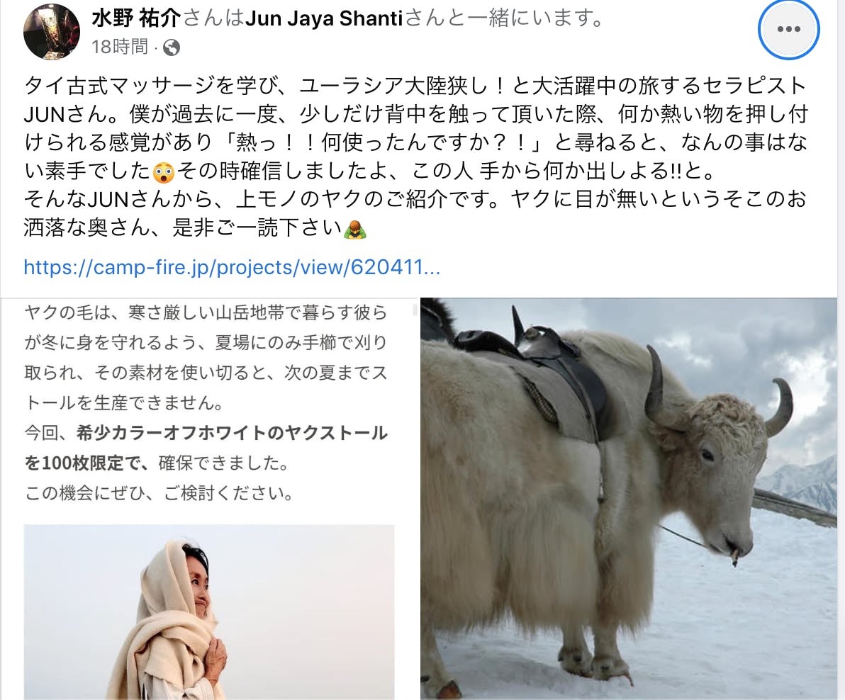ヤクのストールを見つけたネパールで出会った、日本人の青年。