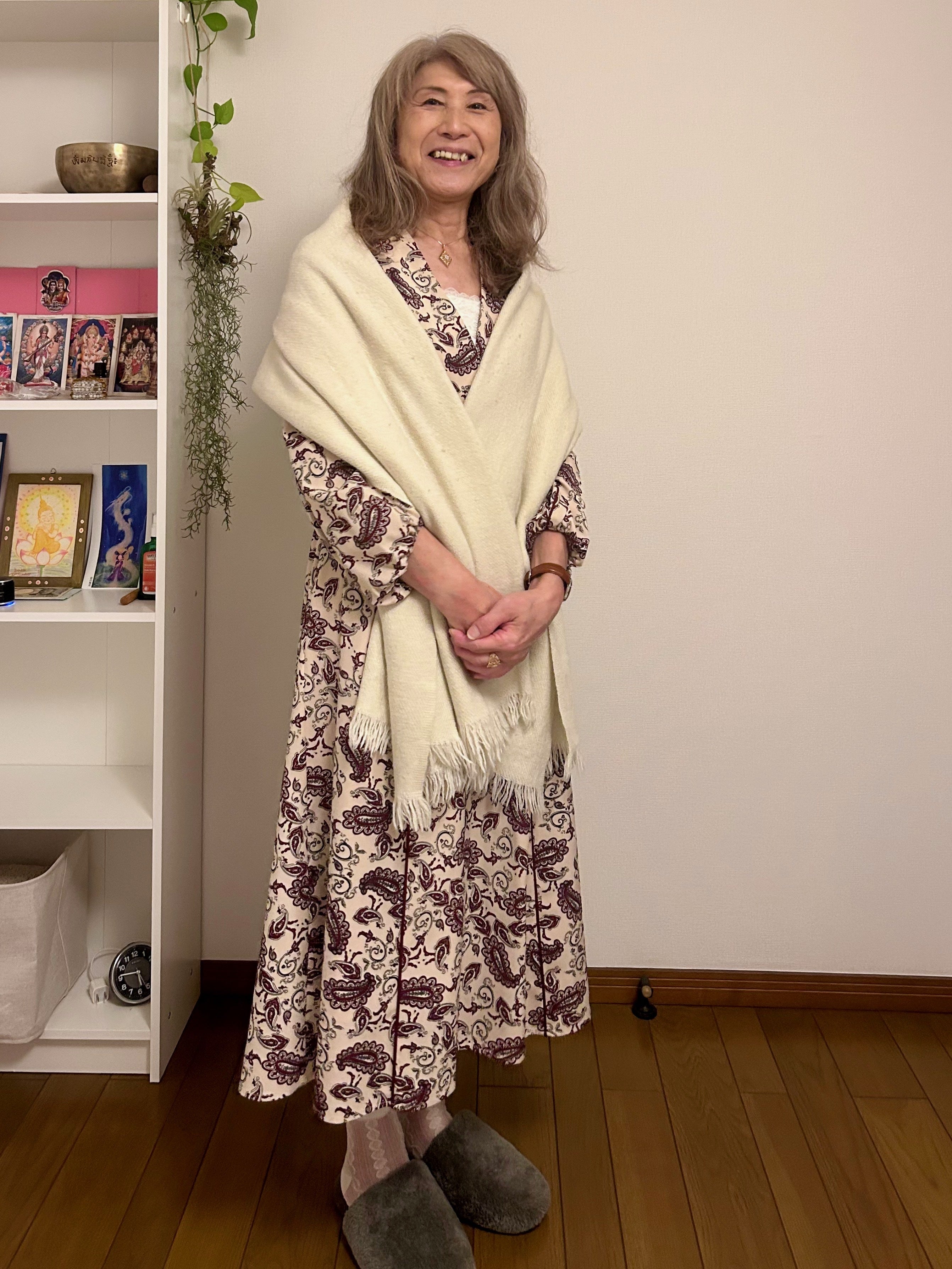 なんと!Shantiストールを羽織ってきてくださいました。