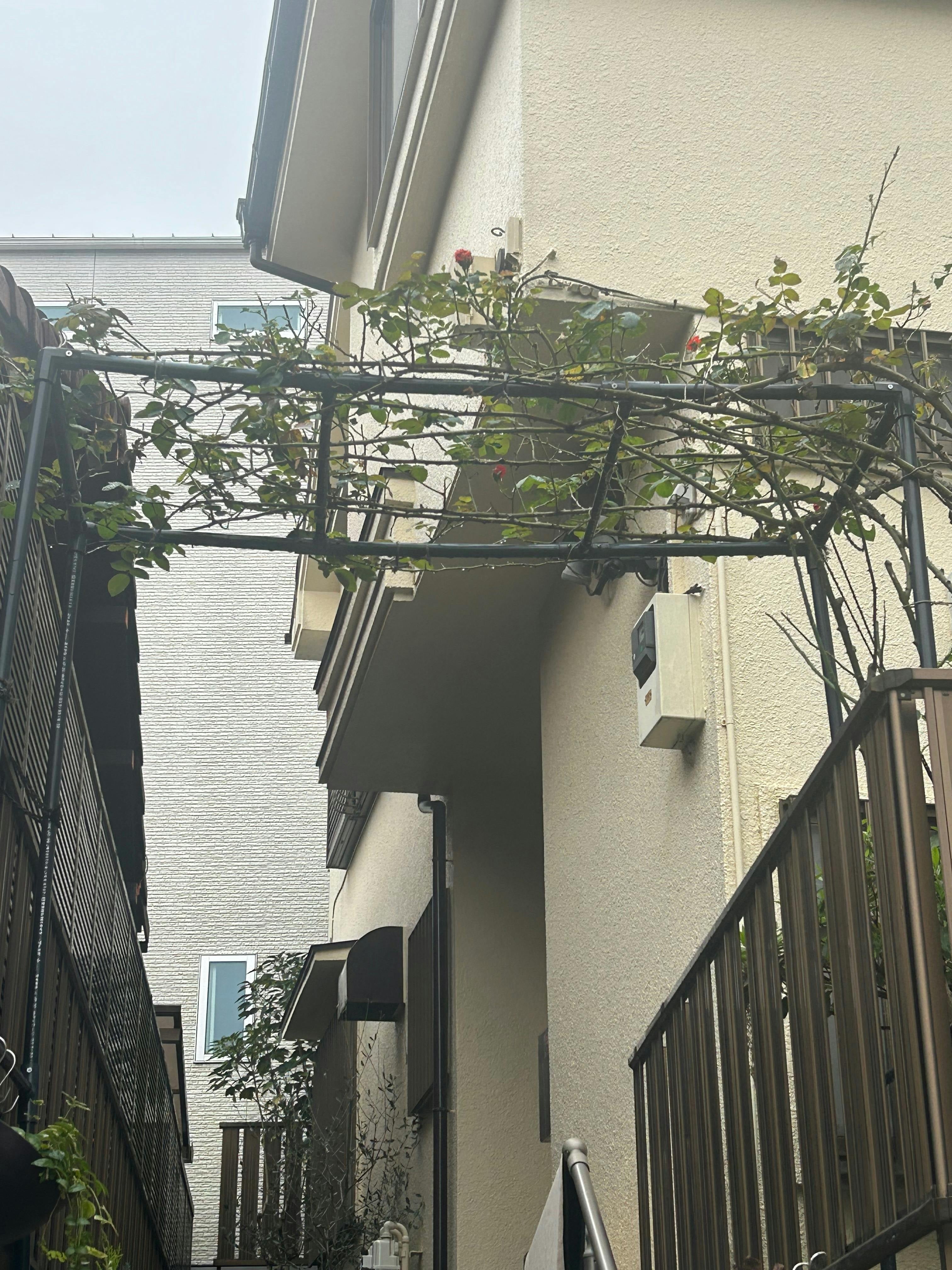 サロンの玄関前のアーチには、季節外れの薔薇がまた一輪咲きました。