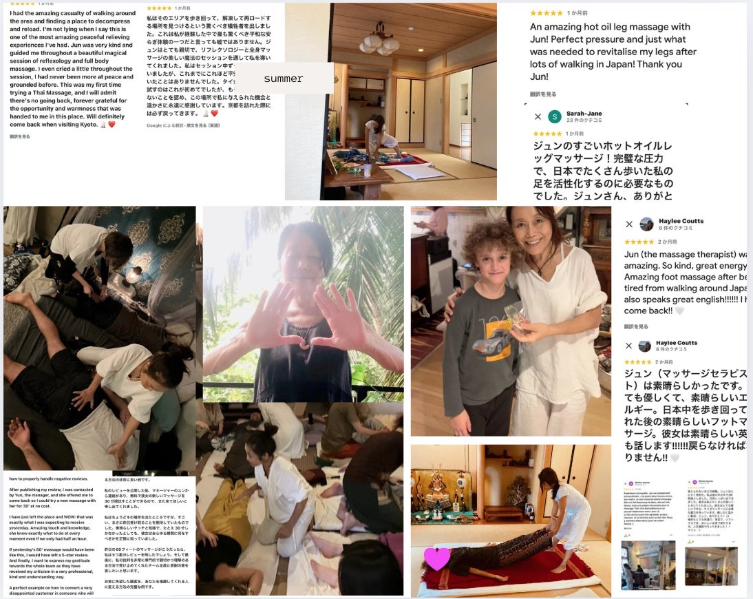 施術を通じて新たな技術やお客様との繋がりを得る貴重な時間となり、たくさんのご予約をいただきました。あまりに忙しくなりすぎて、同僚のセラピストから「これ以上仕事を増やさないでください」と叱られるほどの充実ぶりでした。6月以降、京都で独自の施術スペースを持つことを模索しながら活動を続けました。